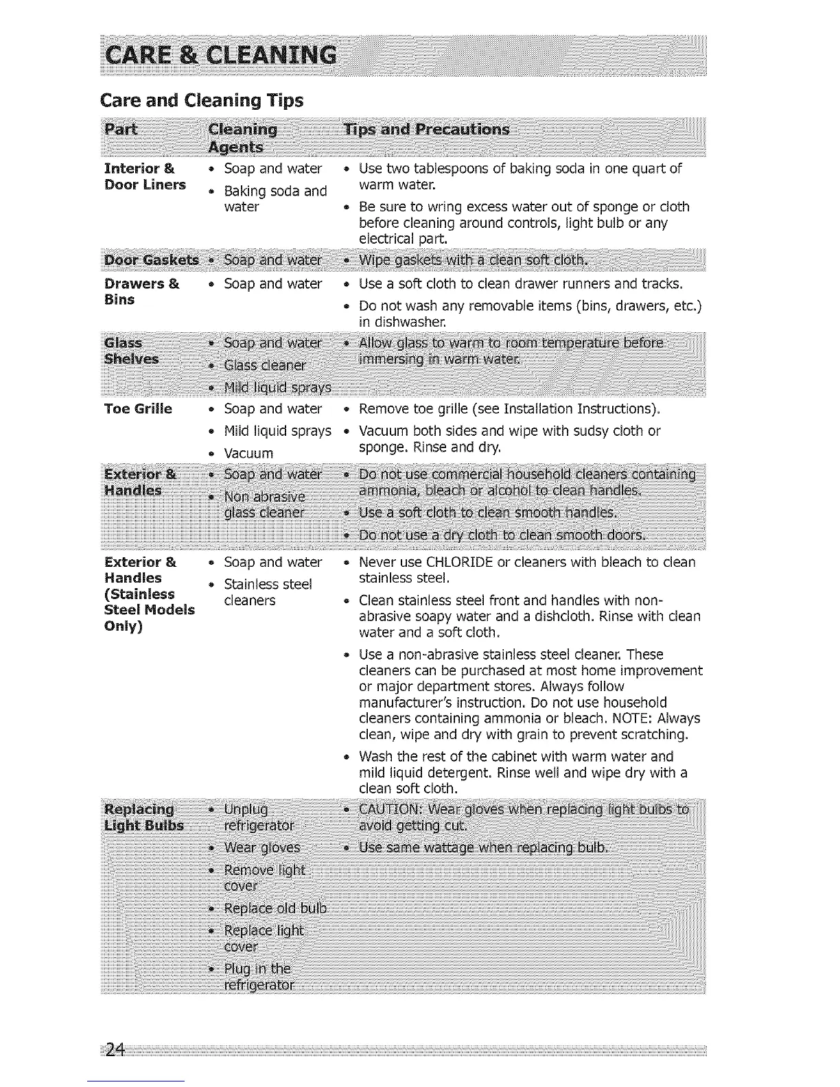 Bins • Do not wash any removable items (bins, drawers, etc.)