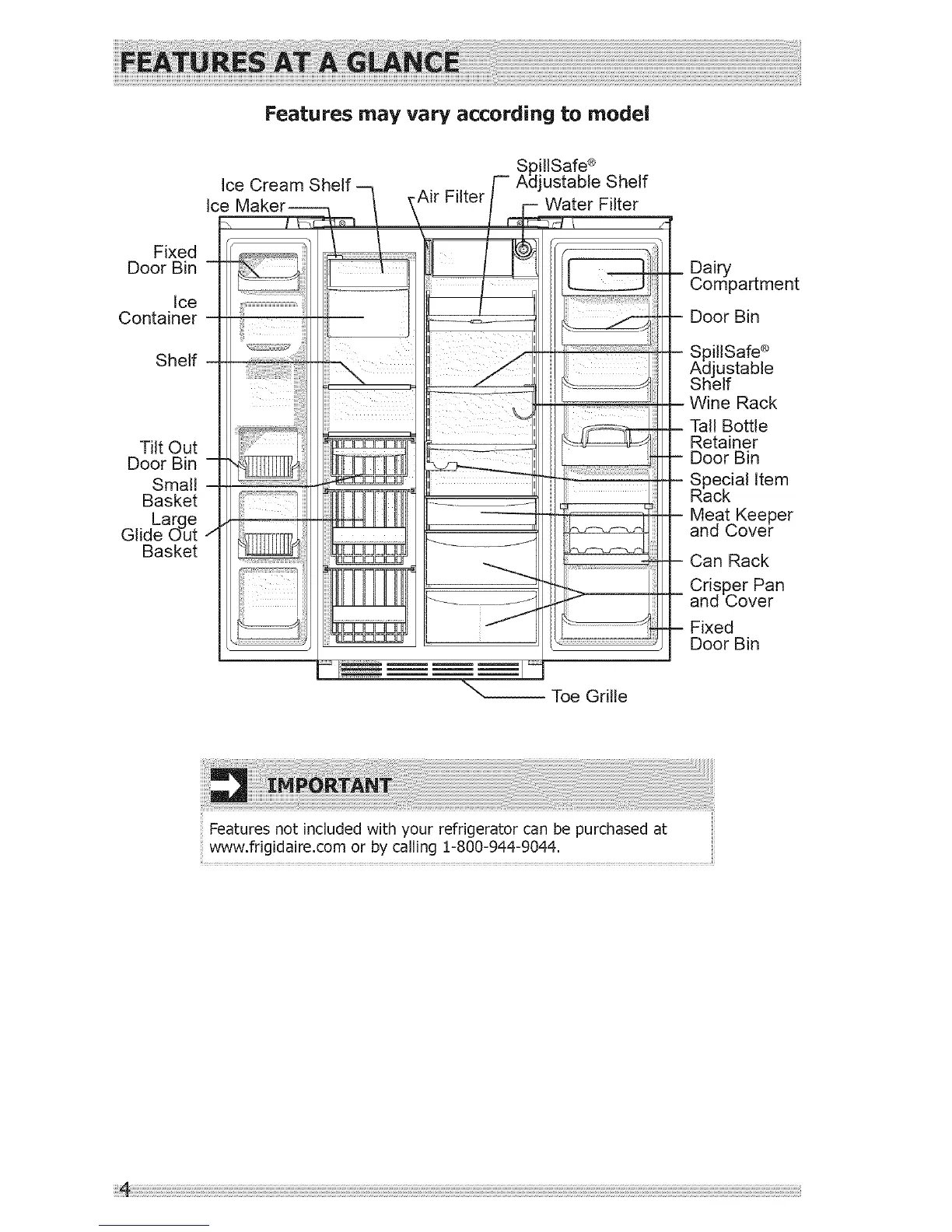 Featuresnot included with your refrigerator can be purchased at