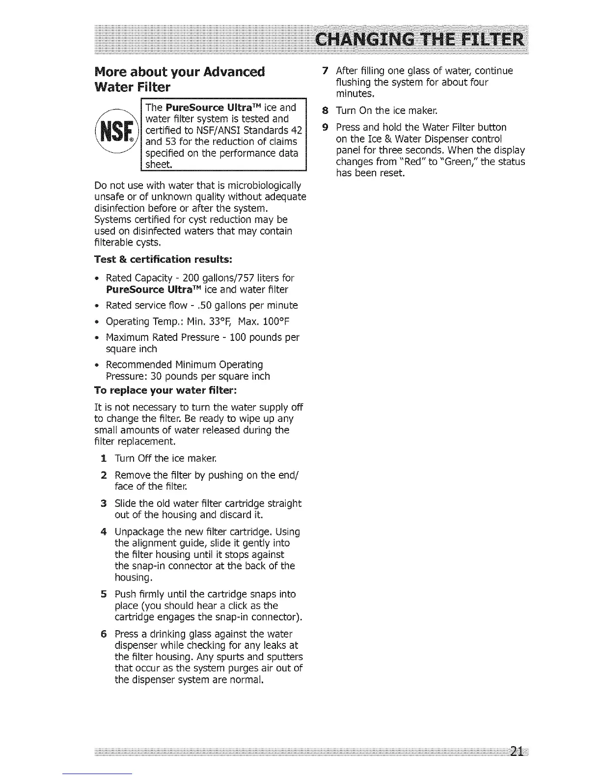 certified to NSF/ANS[ Standards 42