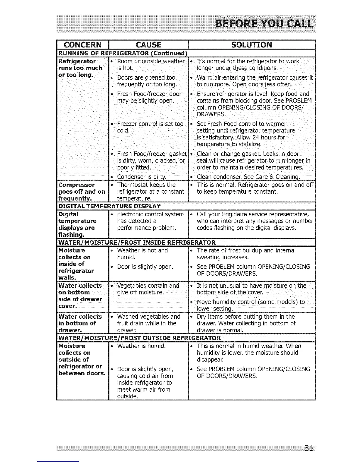 Digital * Electronic control system * Call your Frigidaire service representative,