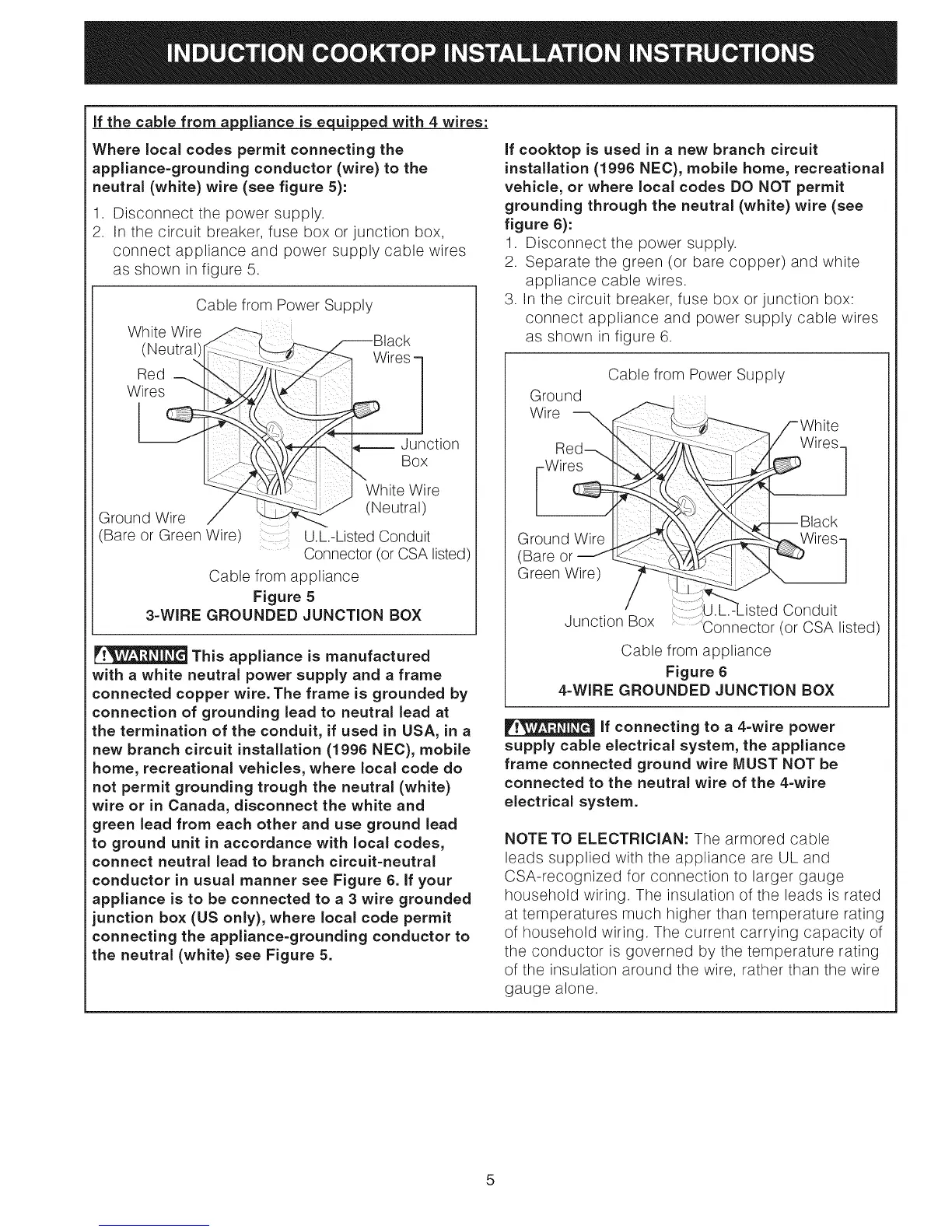 junction box (US only), where local code permit