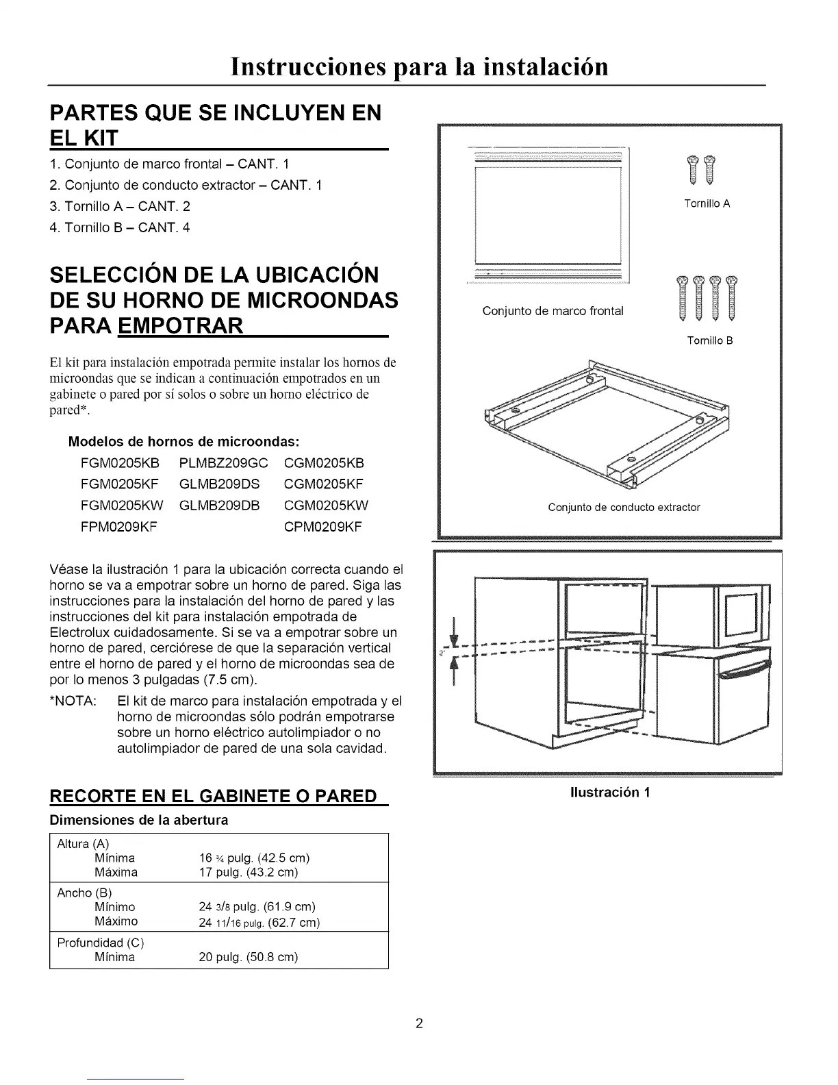*NOTA: El kit de marco para instalaci6n empotrada y el