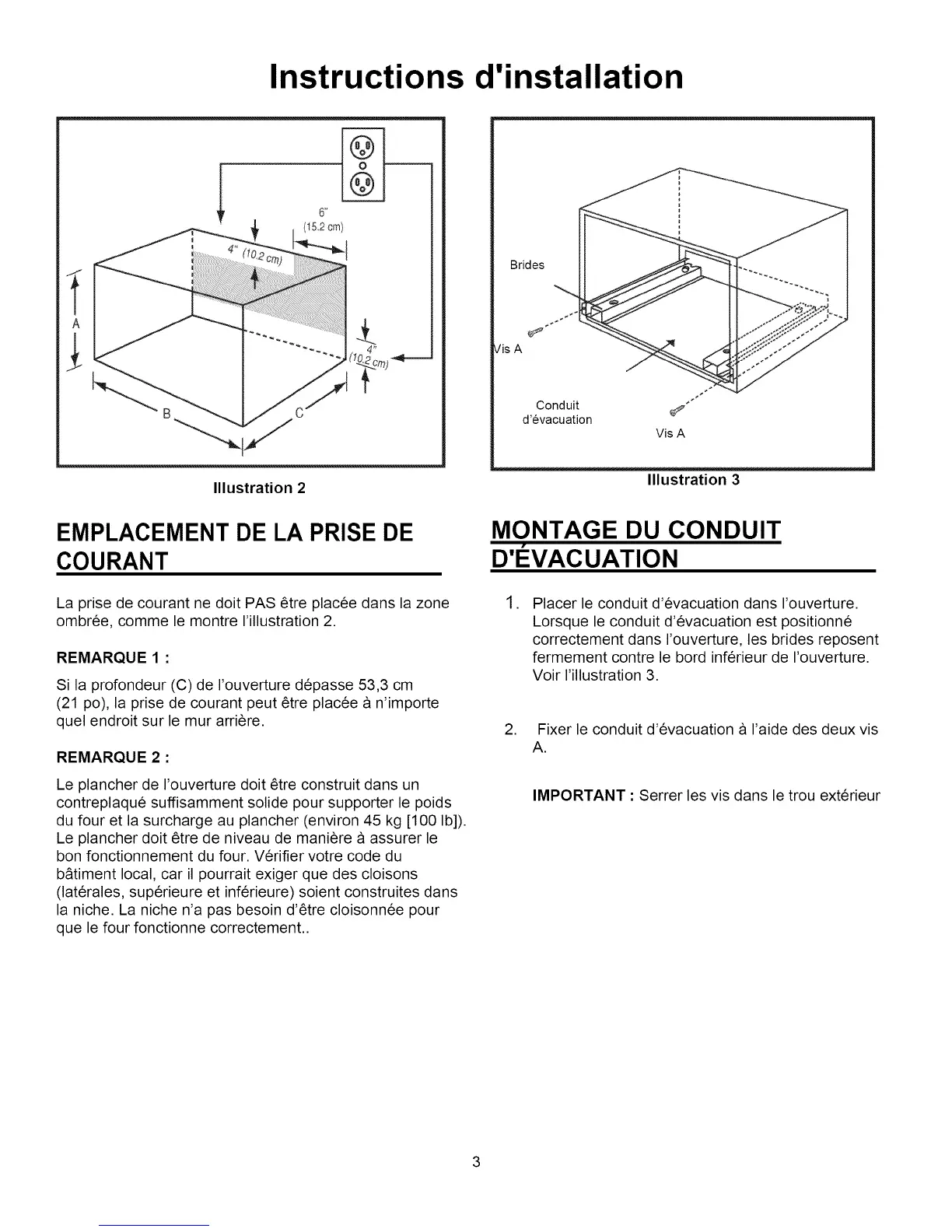 Si la profondeur (C) de I'ouverture depasse 53,3 cm