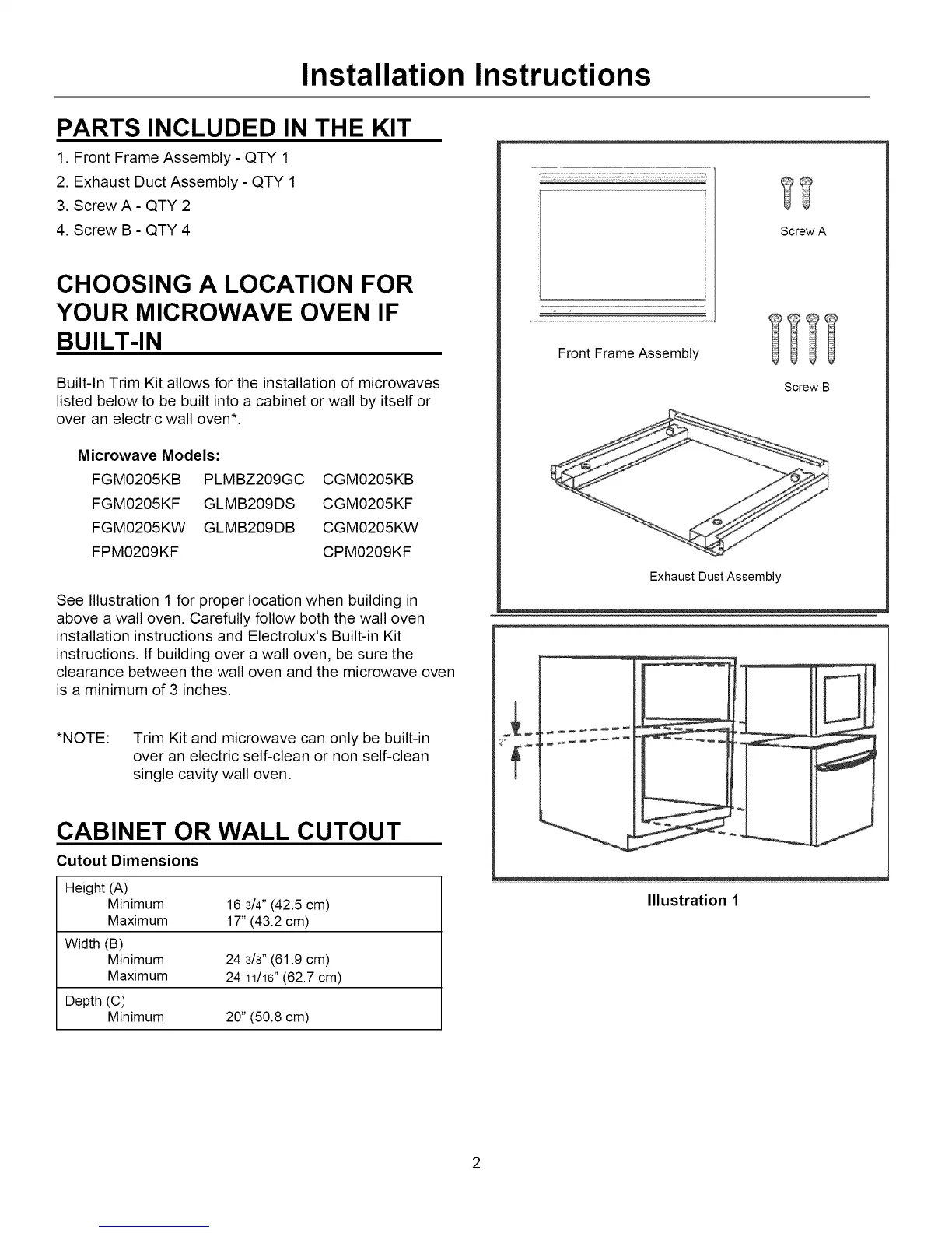 installation instructions and Electrolux's Built-in Kit