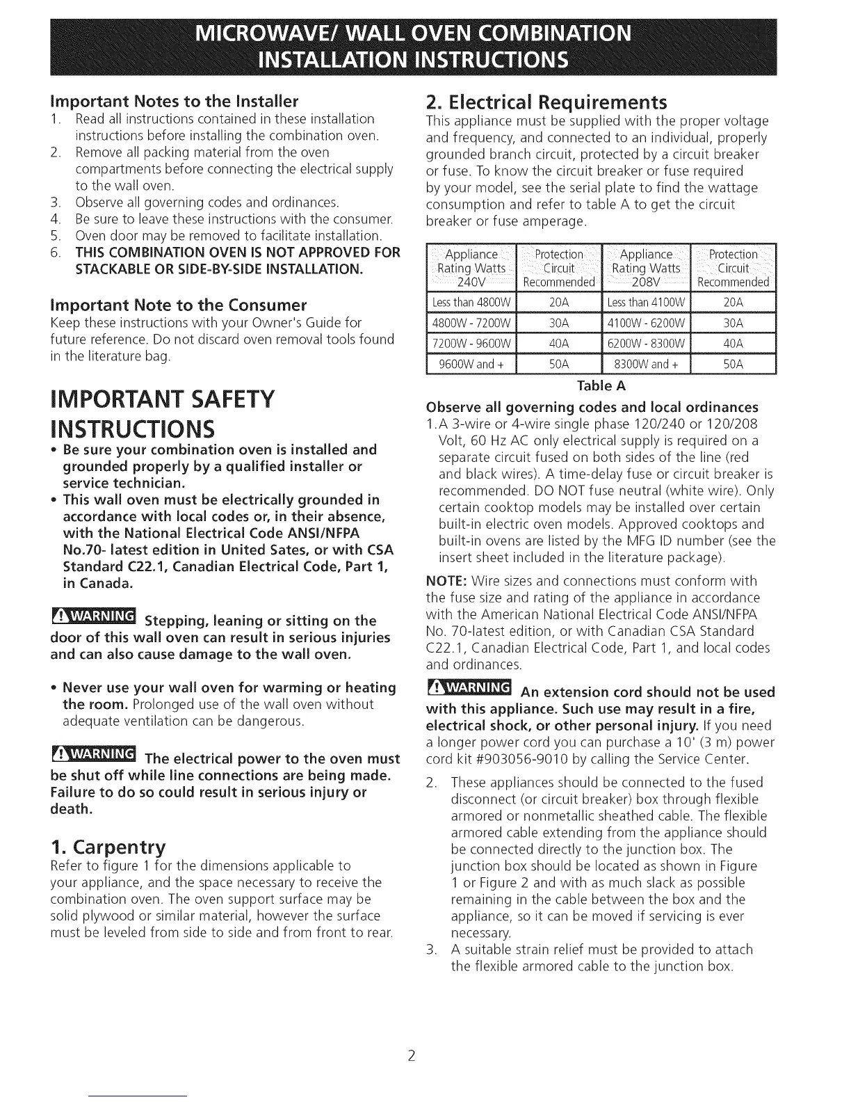 6. THiS COMBINATION OVEN IS NOT APPROVED FOR