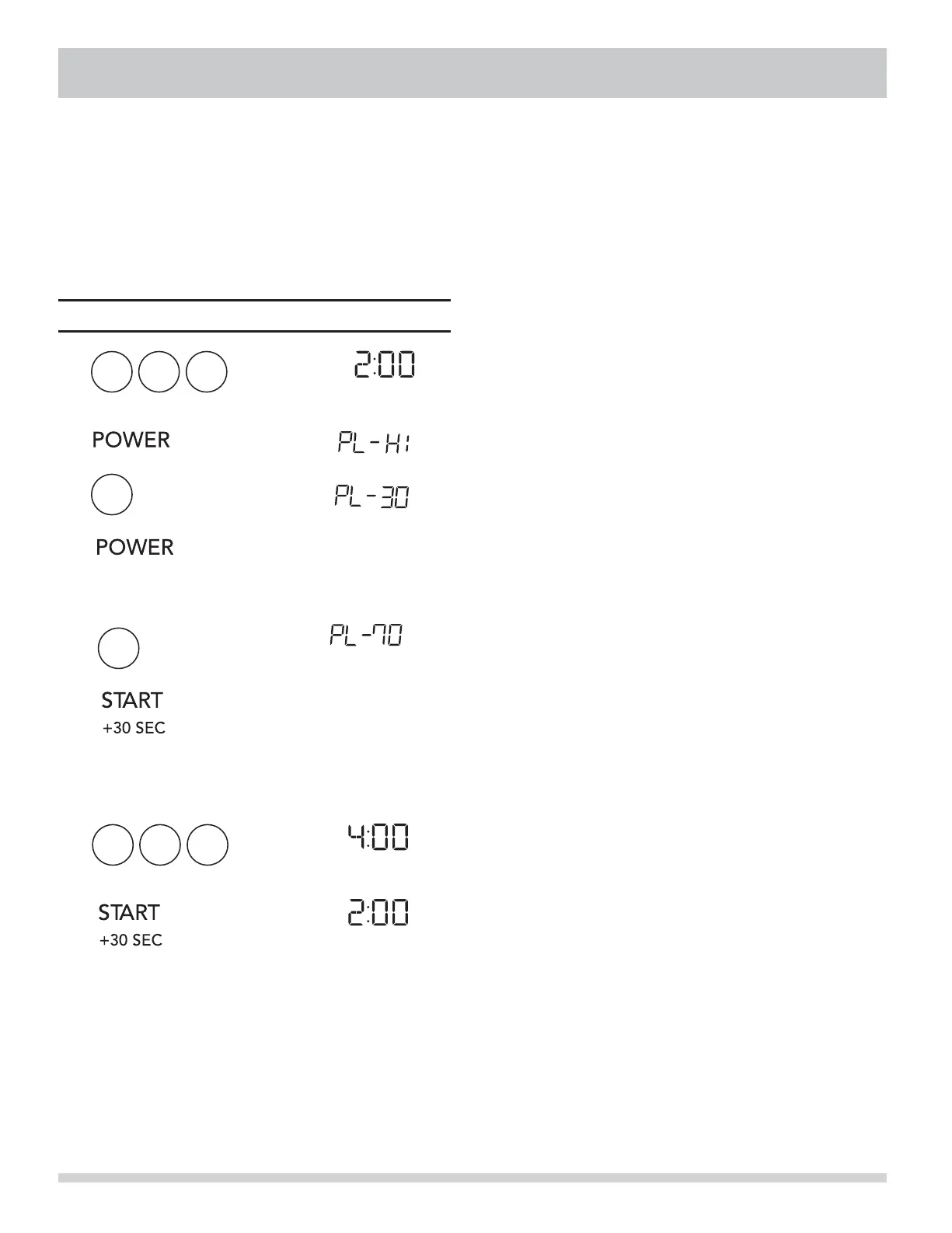 for two power level stages during the cooking cycle.