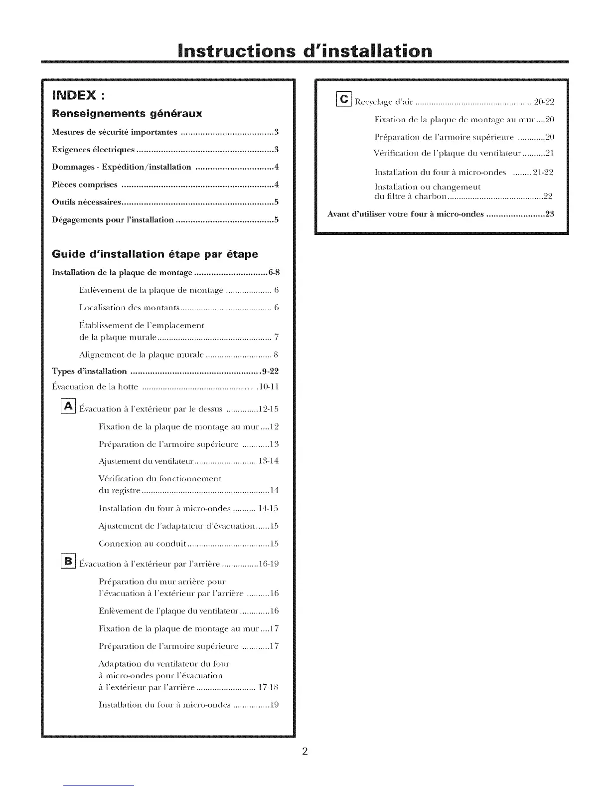 Installation du fi)ur _'_micro-ondes .......... 14-15