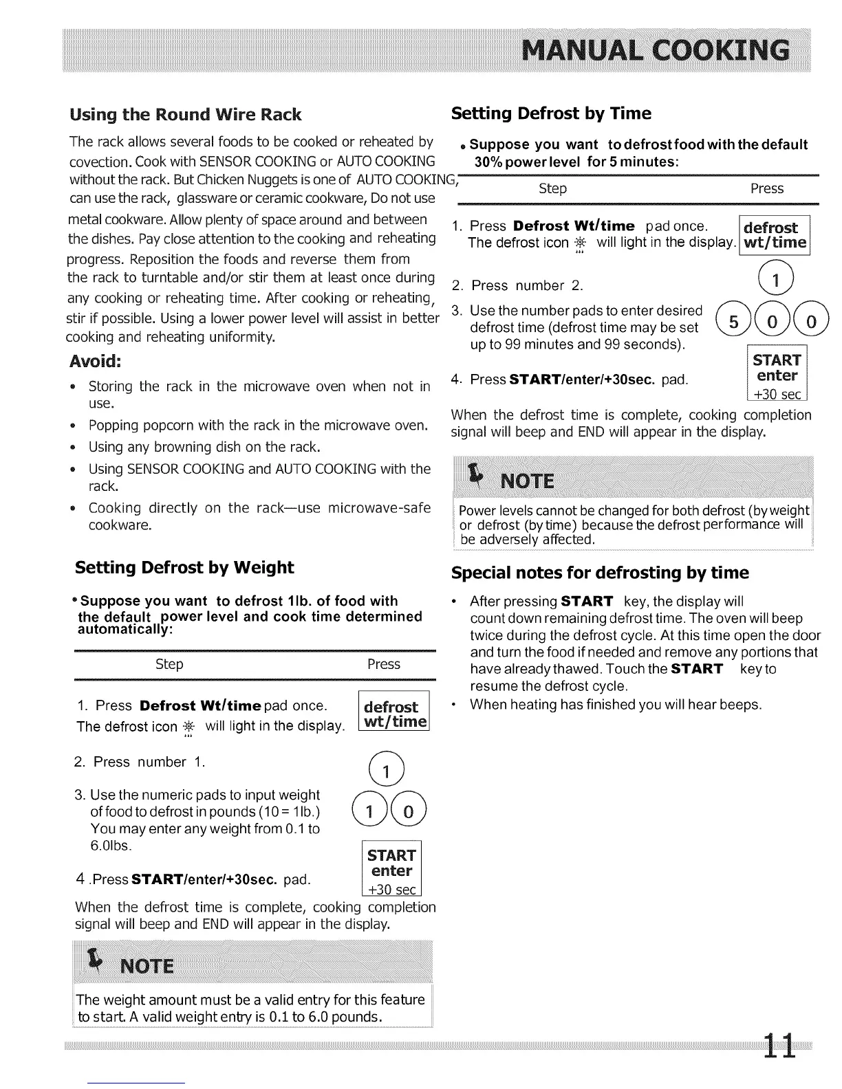 1. Press Defrost Wt/timepad once. defrost
