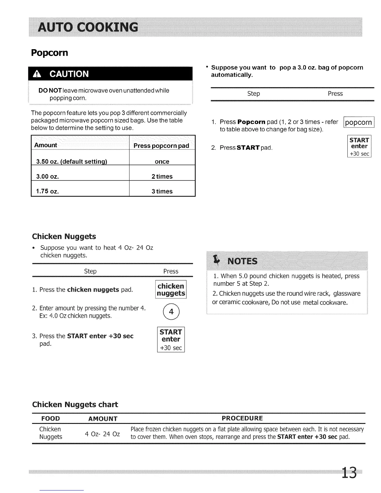 to cover them. When oven stops, rearrange and press the START enter +30 sec pad.