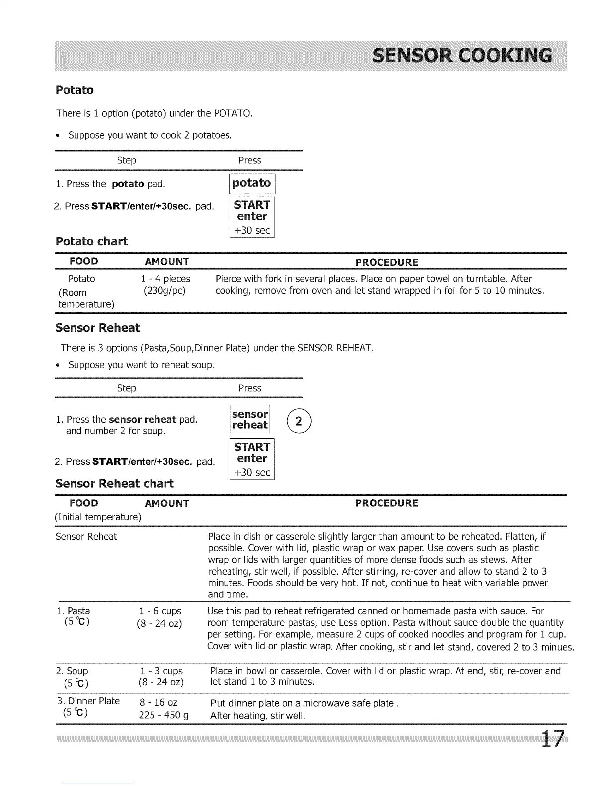 There is 3 options (Pasta,Soup, Dinner Plate) under the SENSORREHEAT.
