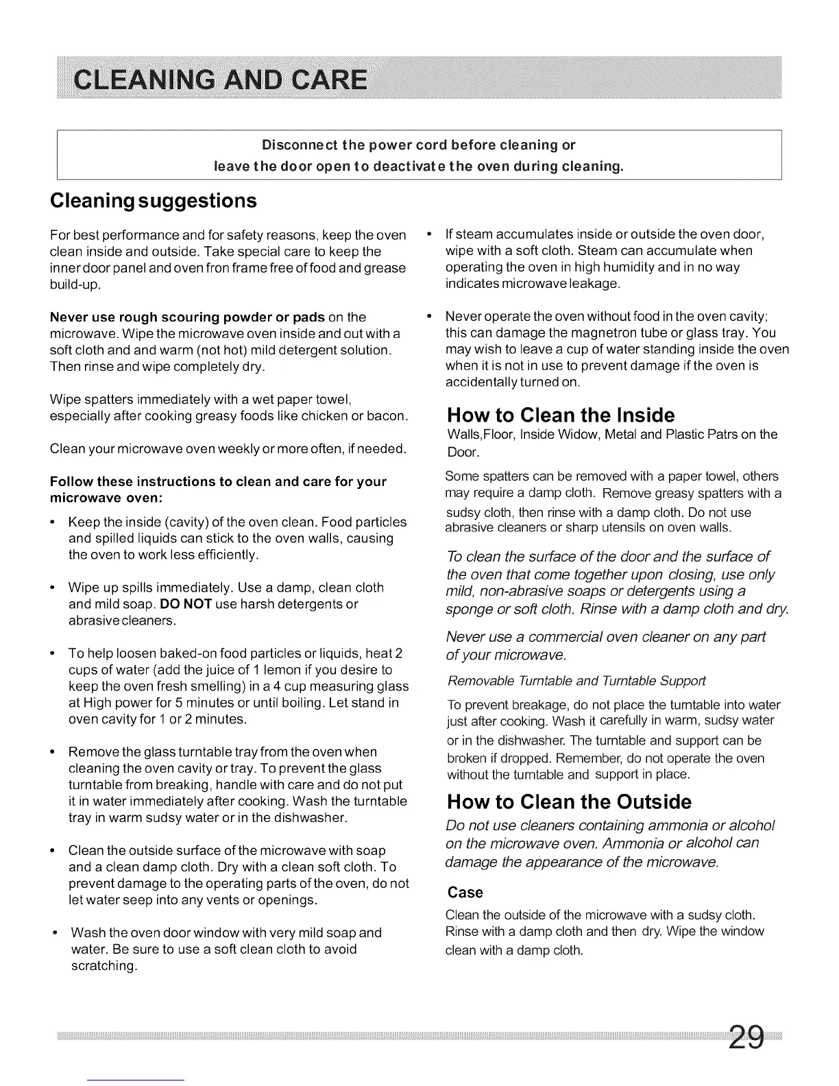 clean inside and outside. Take special care to keep the