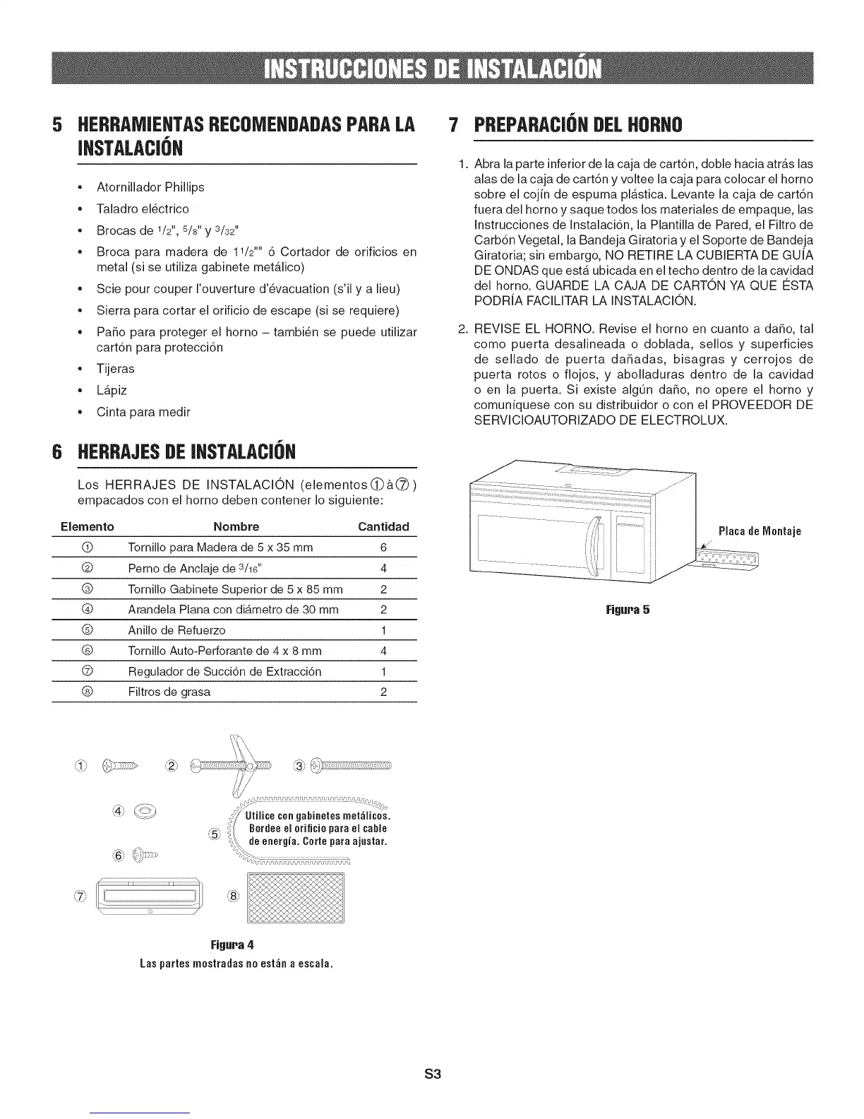 Instrucciones de Instalaci6n, la Plantilla de Pared, el Filtro de