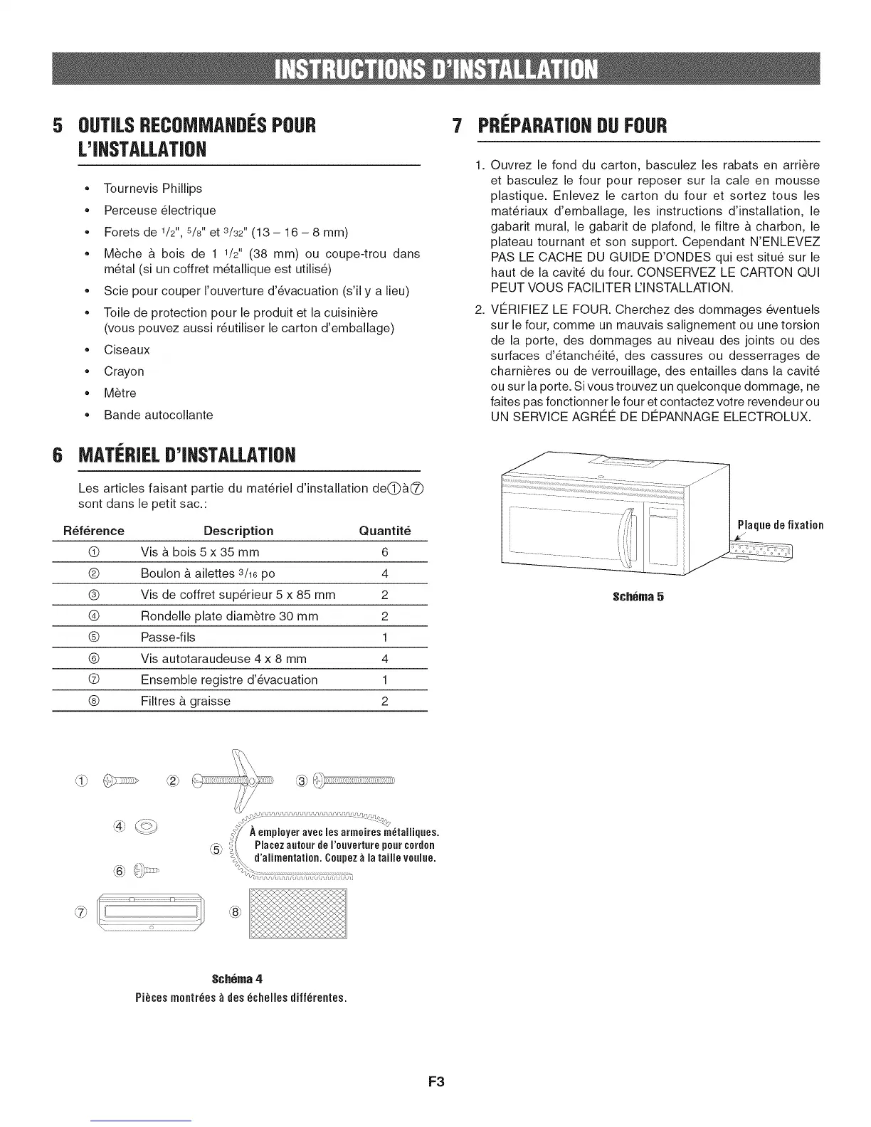 Les articles faisant partie du mat6riel d'installation deO&(_