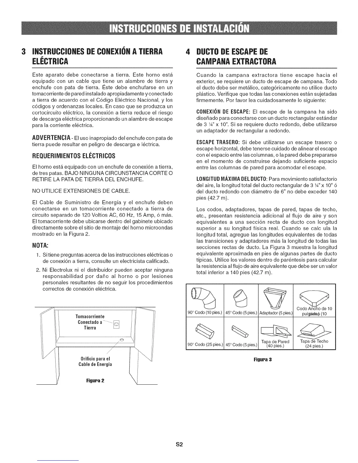 de 3 W'x 10". Si se requiere ducto redondo, debe utilizarse