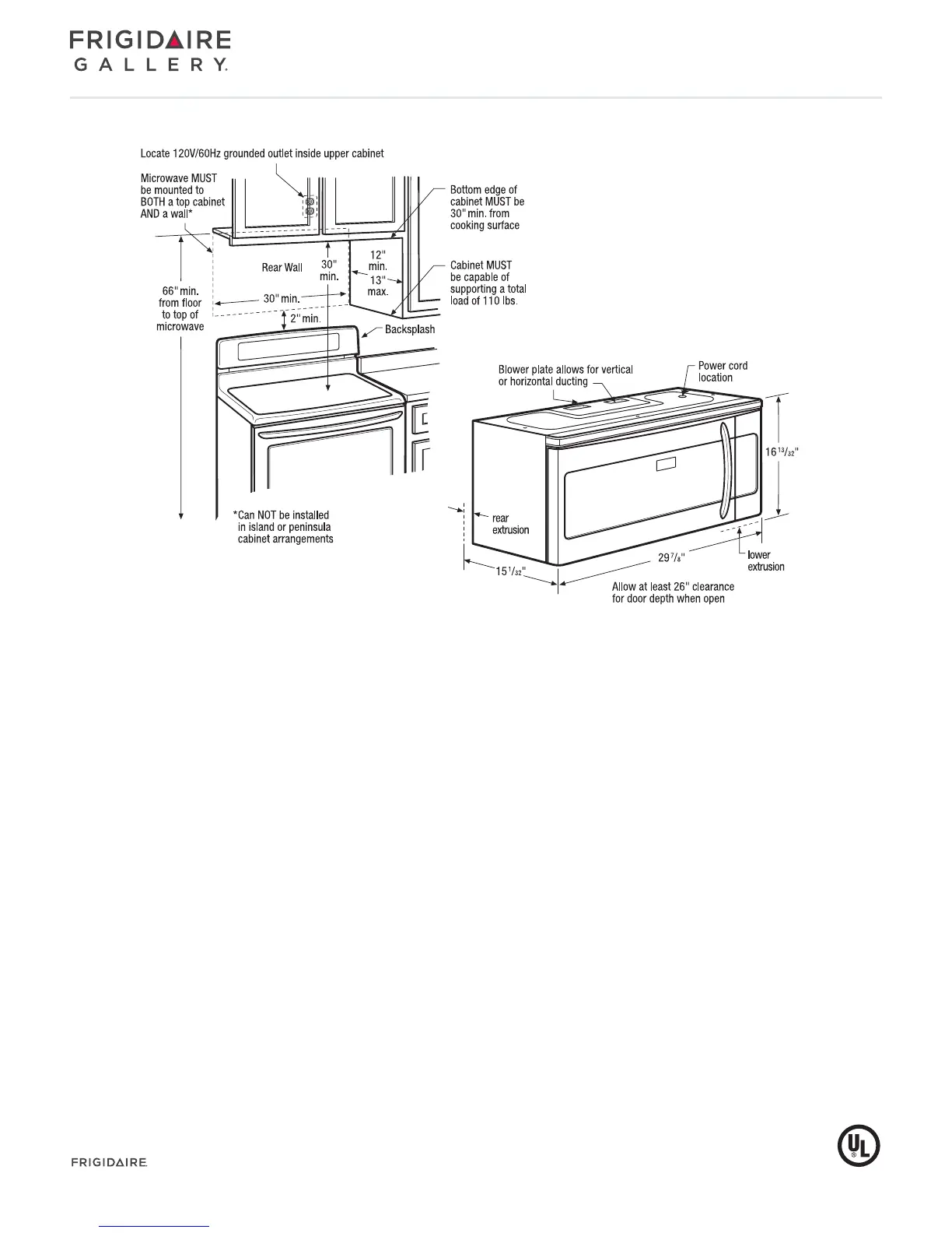 Cabinet MUST be capable of supporting a total load of 110 lbs.