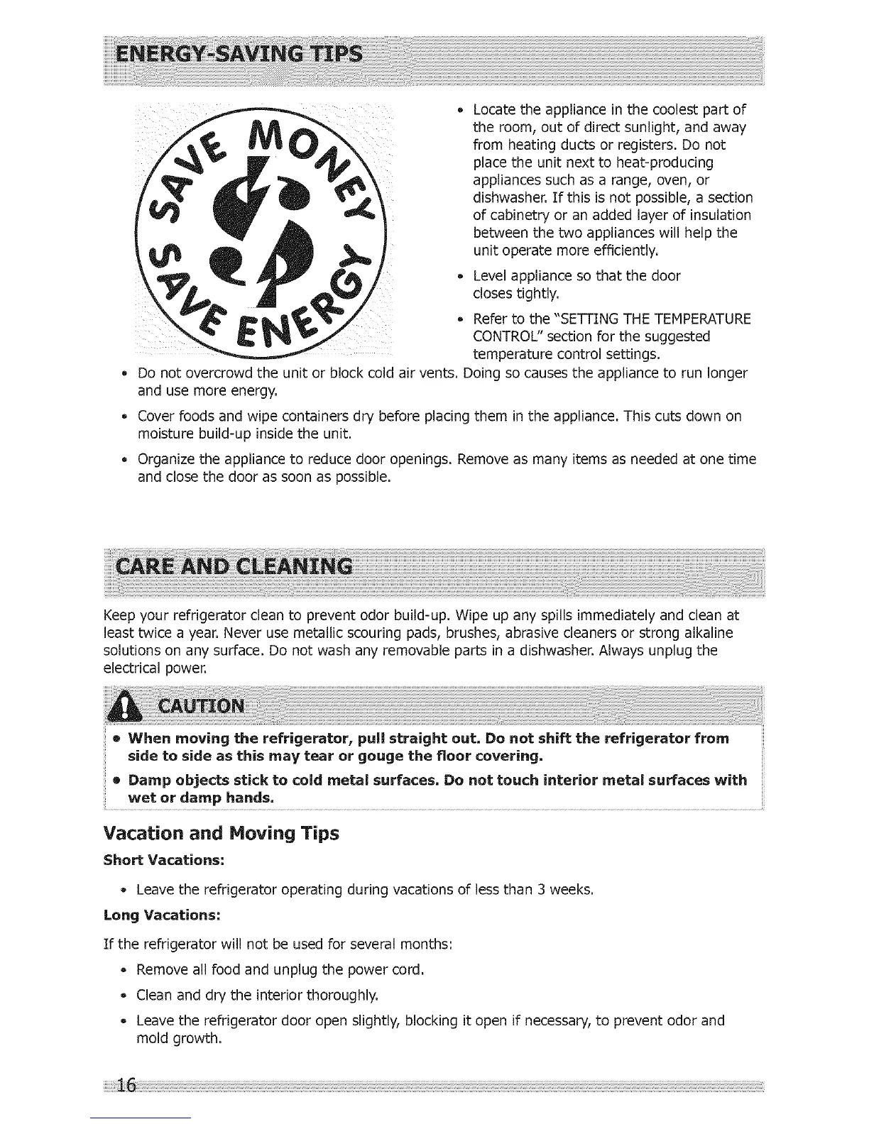 , Leave the refrigerator operating during vacations of less than 3 weeks.