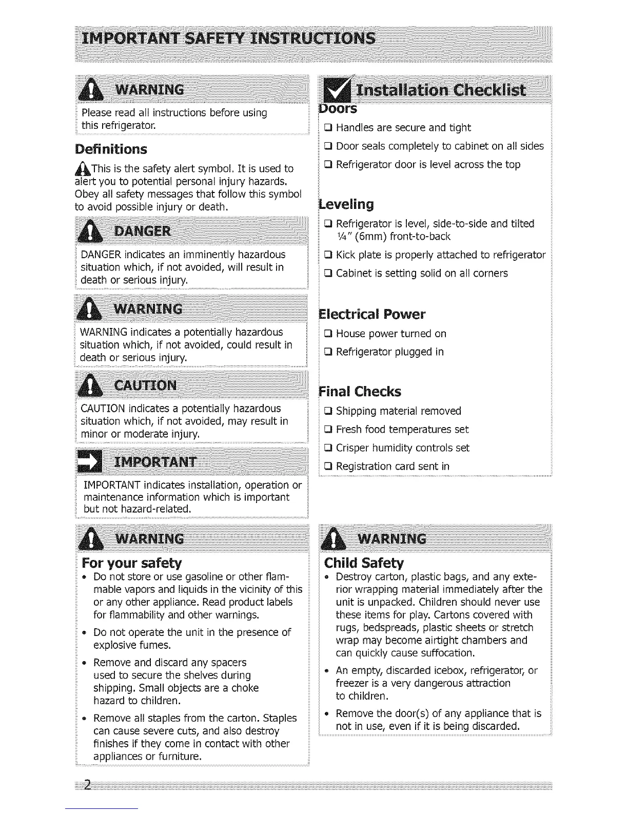 0 Refrigerator is level, side-to-side and tilted