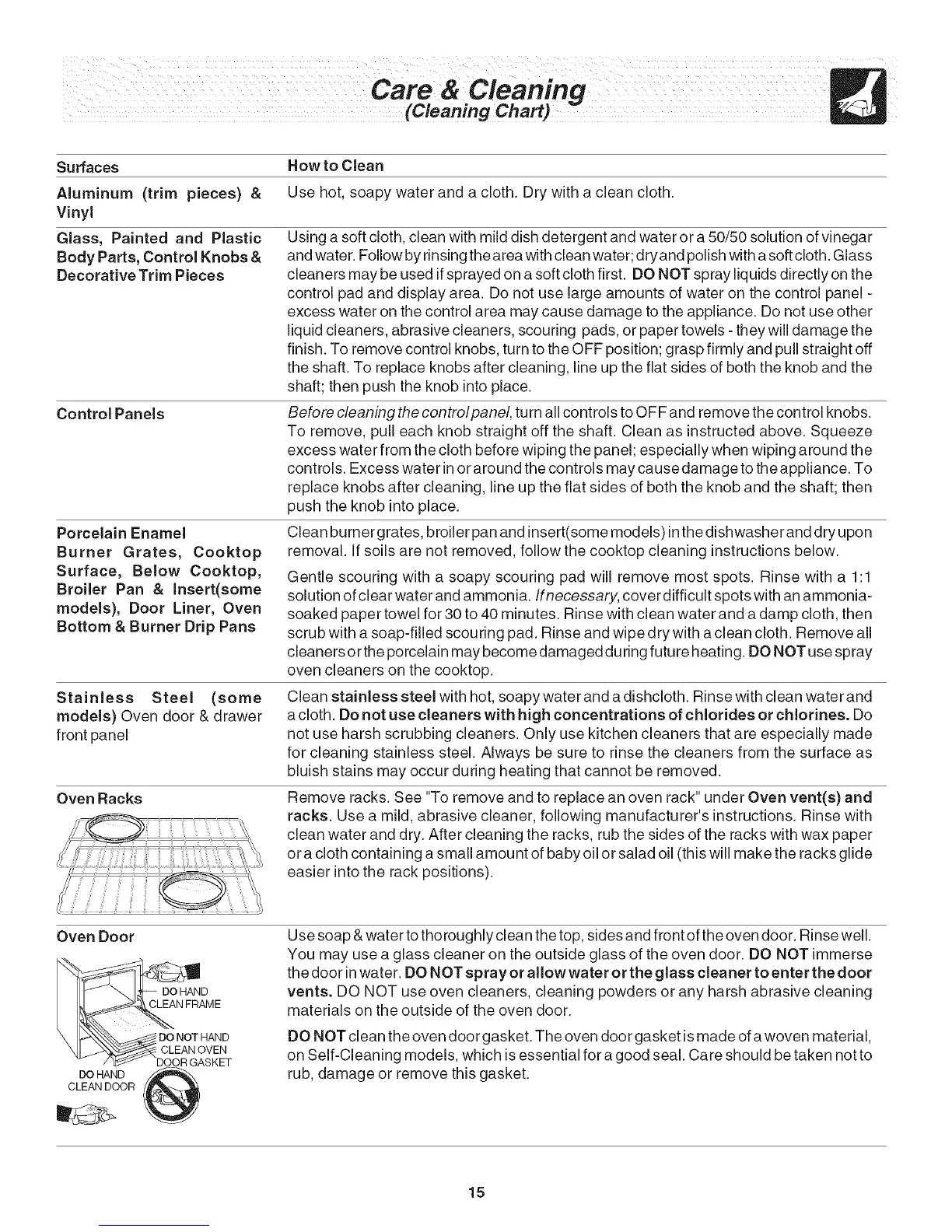 cleaners orthe porcelain may become damaged du ring future heating. DO NOT use spray