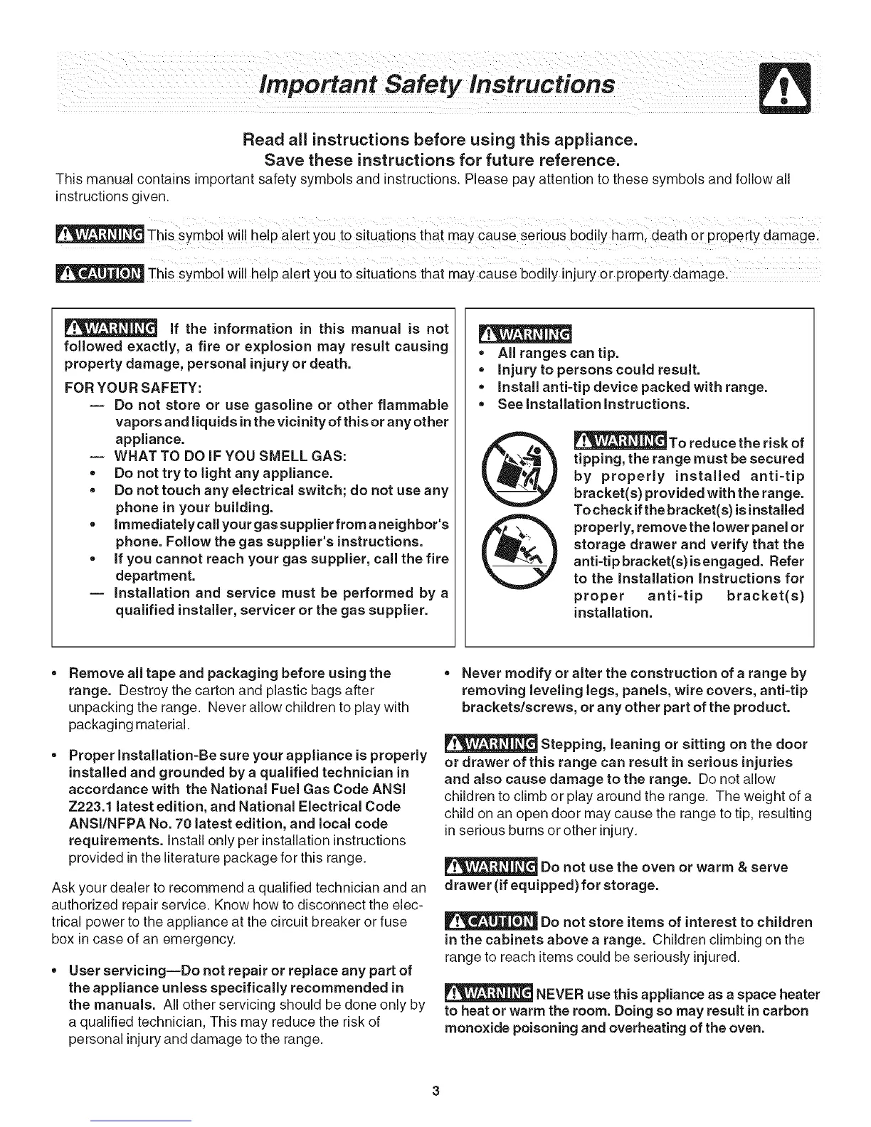 This SYmbol will help alert you to situations that maYcause seiious bodily harm I deat h or property damage.