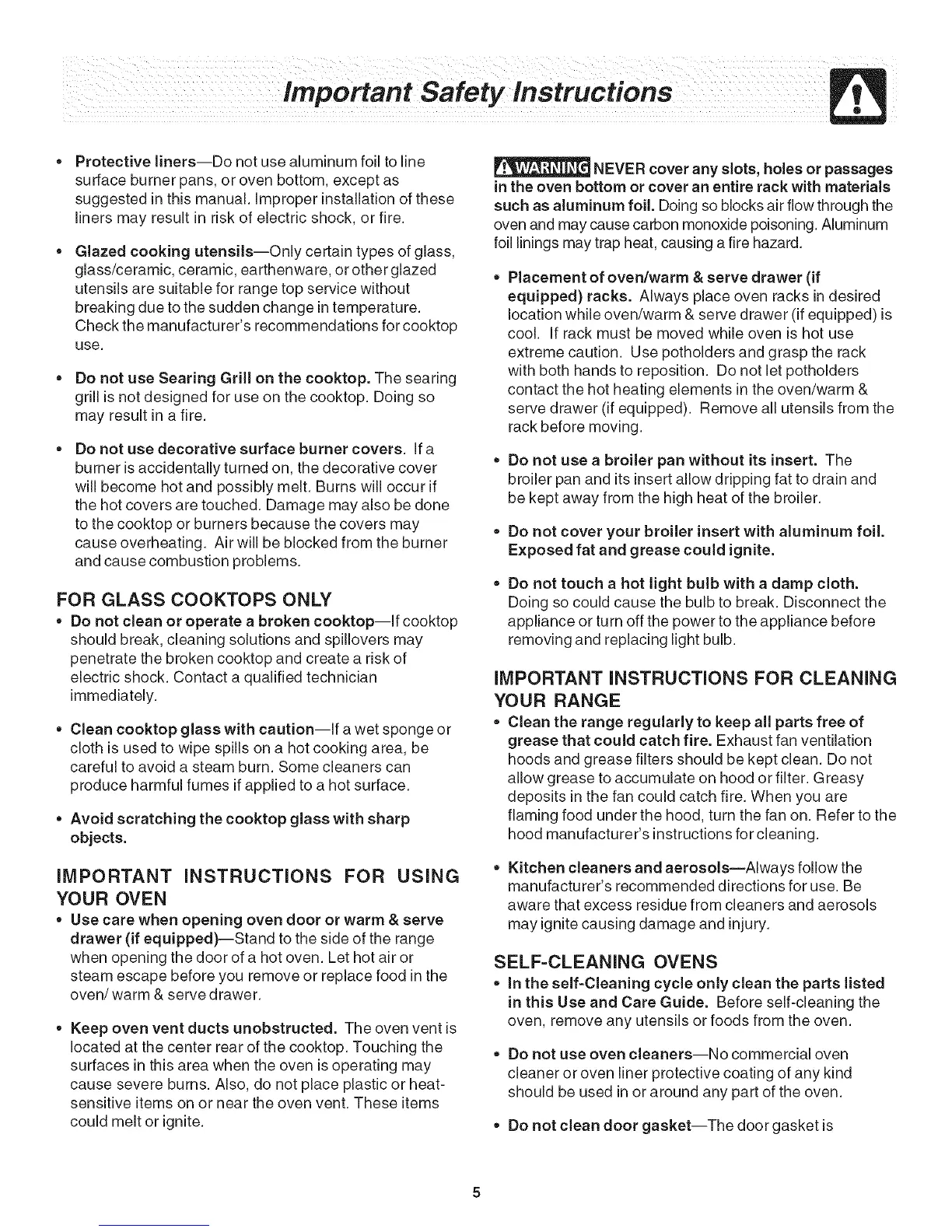 in this Use and Care Guide. Before self-cleaning the