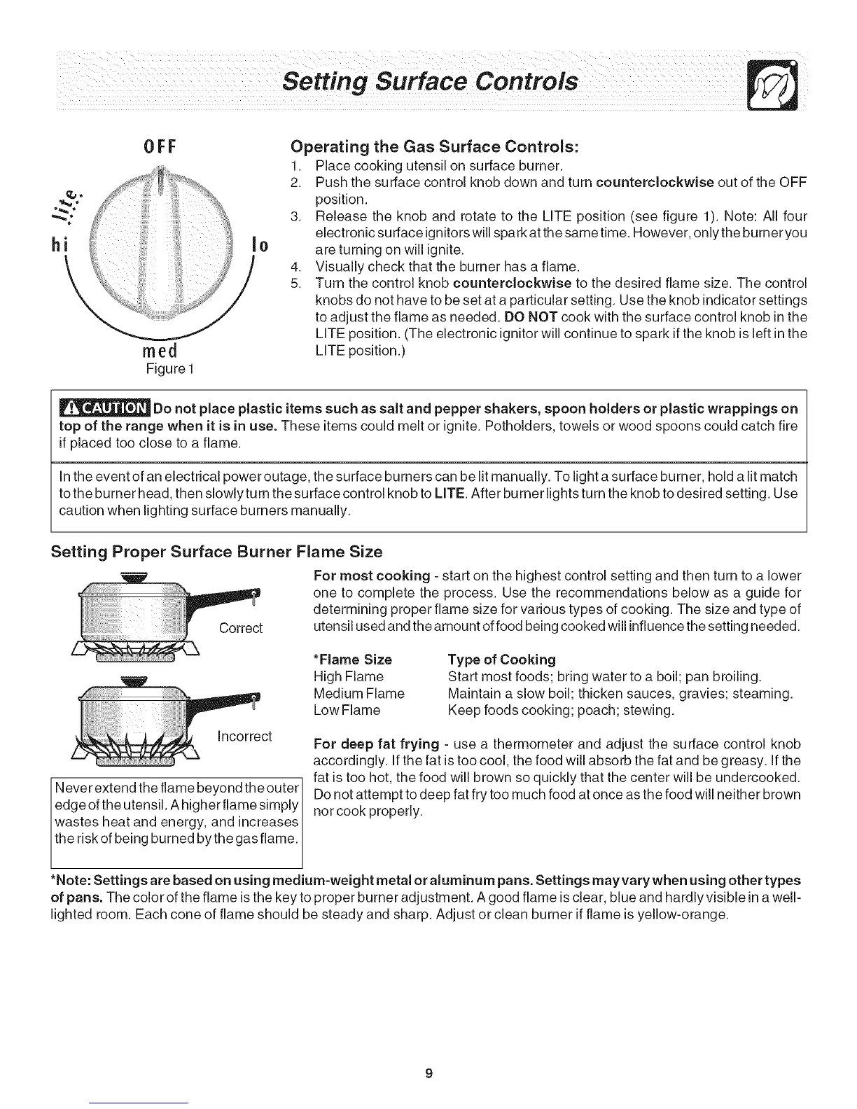 to the burner head, then slowlytu m the surface control knob to LITE. After burner lights turn the knob to desired setting. Use