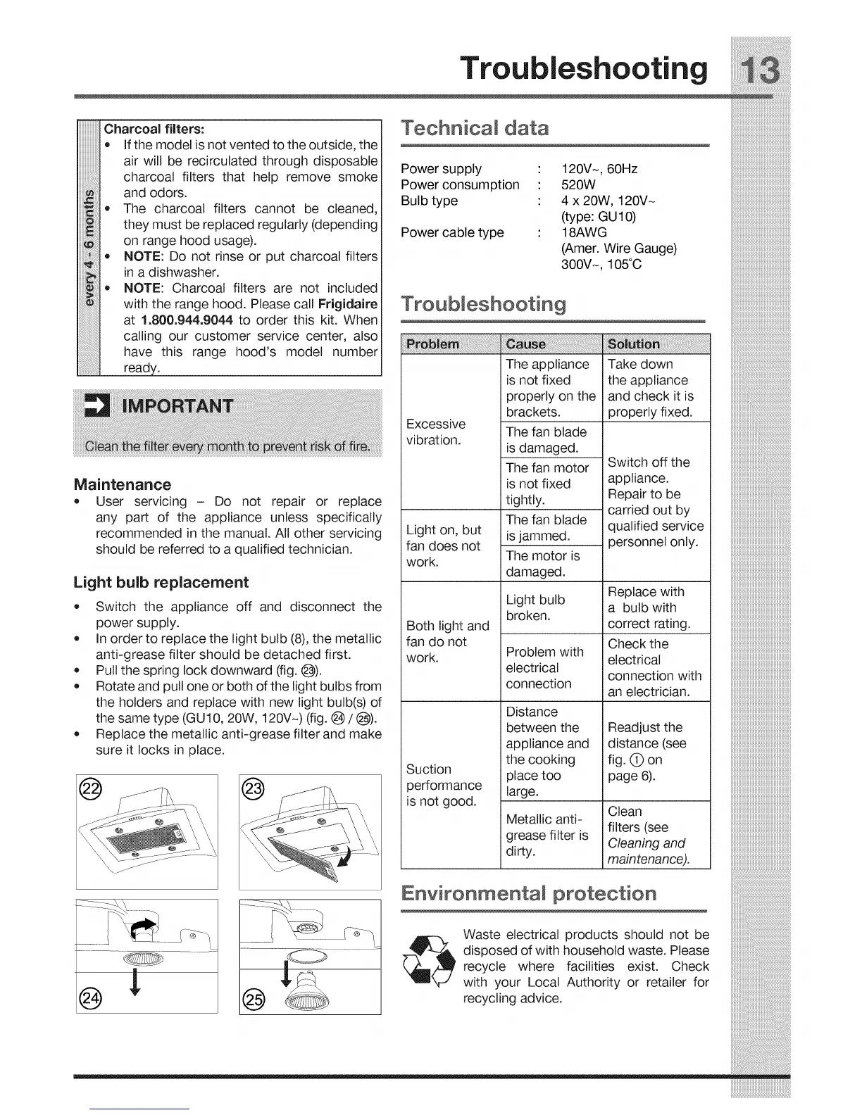 iiiiiiiJiiiii with the range hood. Please call Frigidaire Troubleshooting