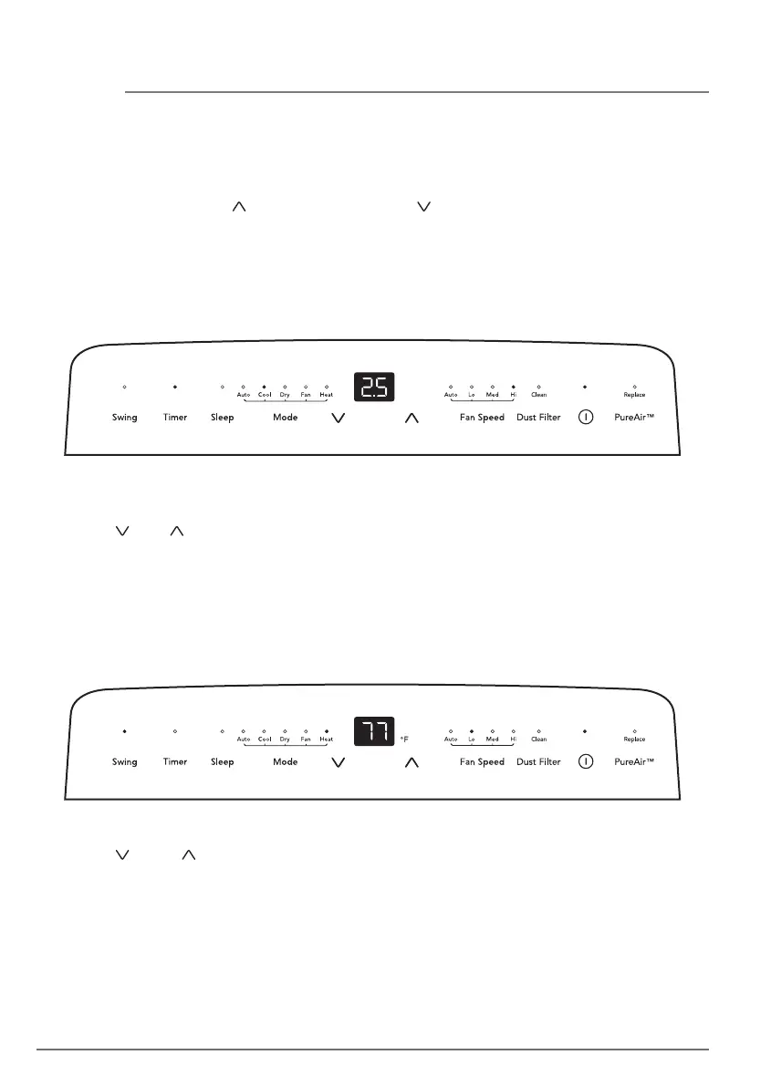 Press the “ ” or “ ” button to choose the temperature you want.