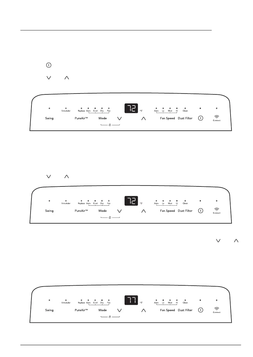 Press the “ ” or “ ” button to choose the temperature in a range of 60°F - 90°F (16°C -