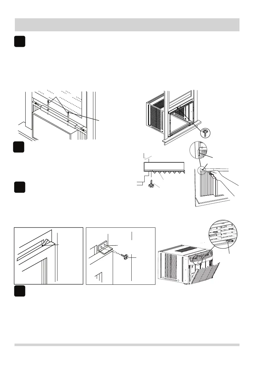 snap into place on cabinet. Insert 4 previously removed screws through front panel and into air conditioner.