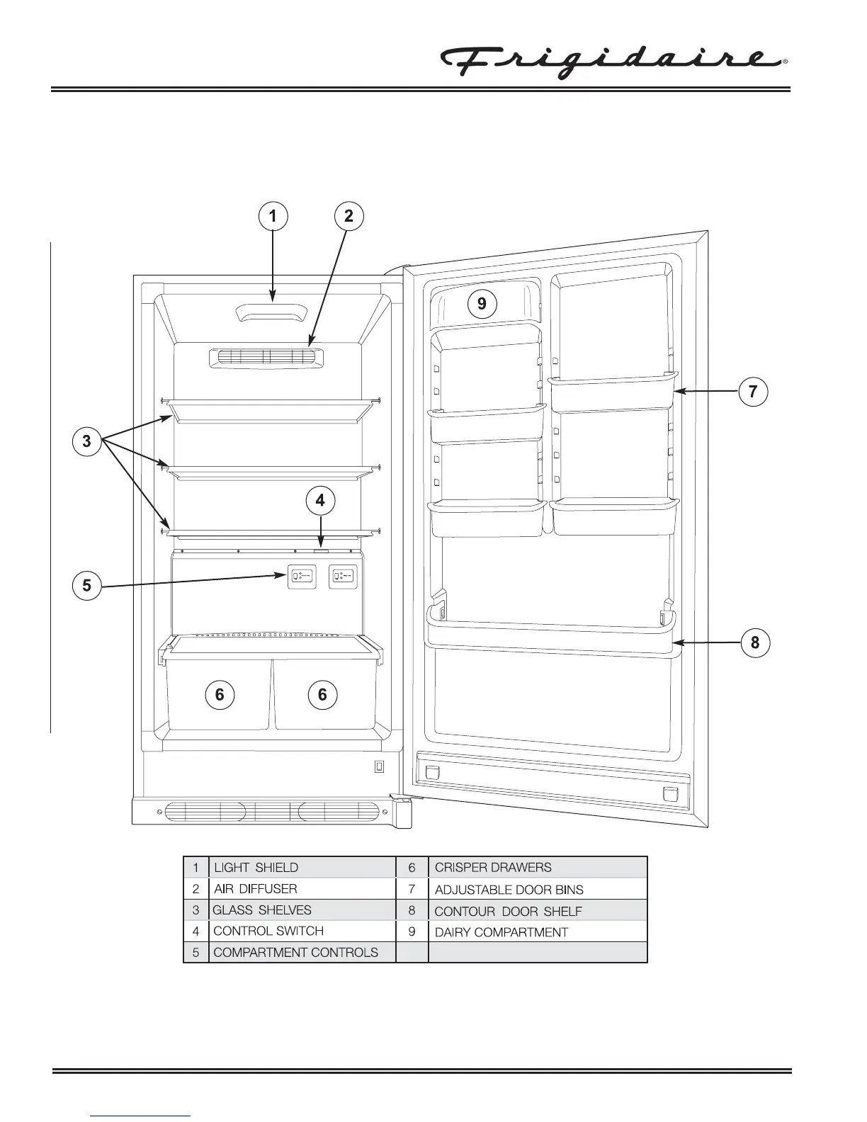 Frigidaire refrigerator/freezers are designed for optimal convenience and storage flexibility. Use the illustration below