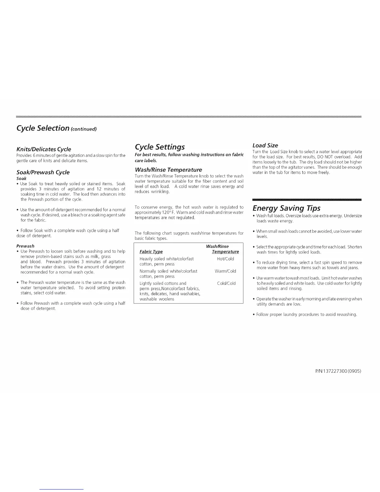 Select the appropriate cycle and time for each load. Shorten