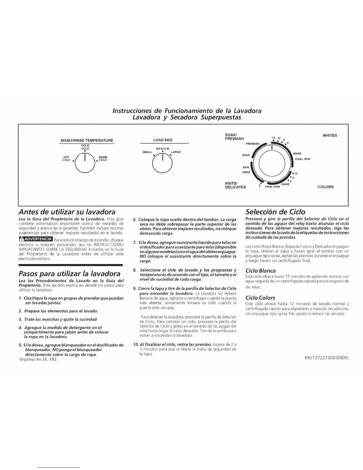 del Propietario de la Lavadora antes de utilizar este
