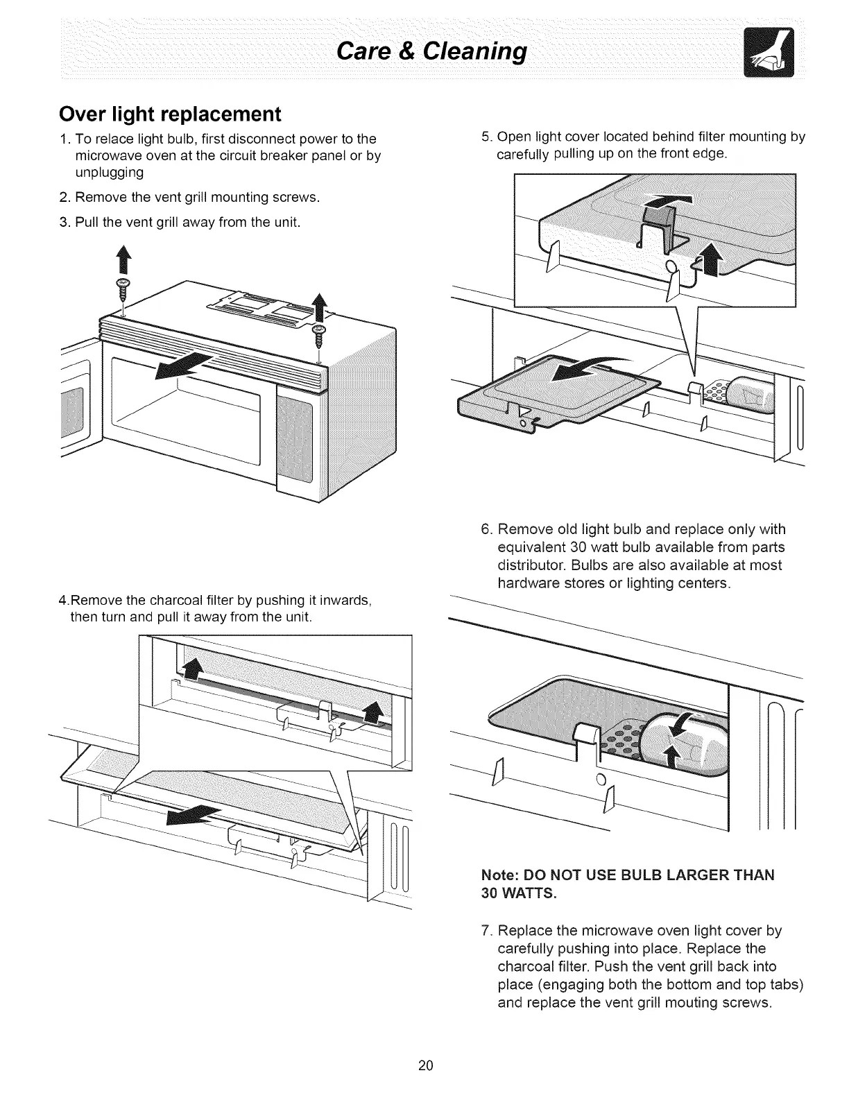 6. Remove old light bulb and replace only with