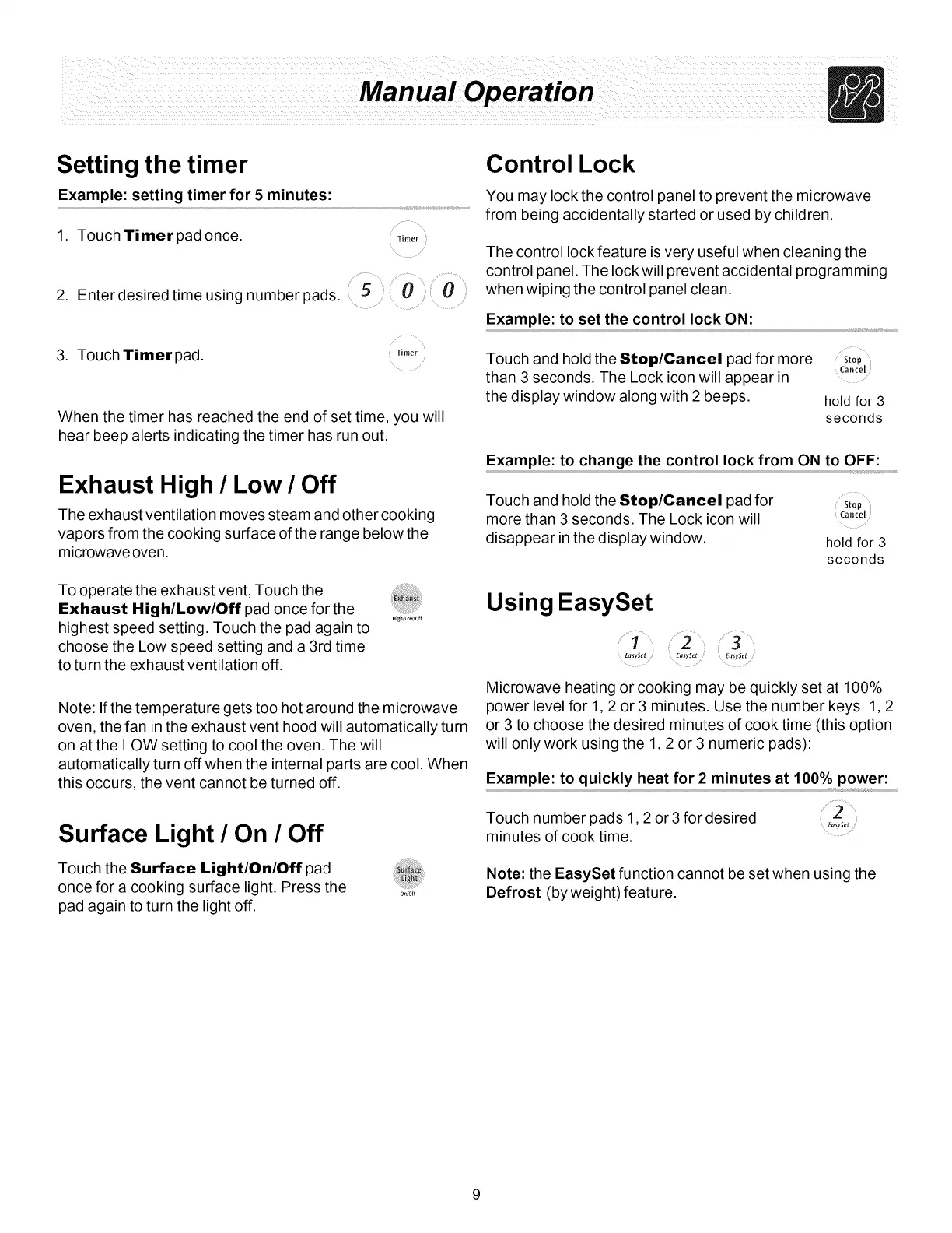 once for a cooking surface light. Press the