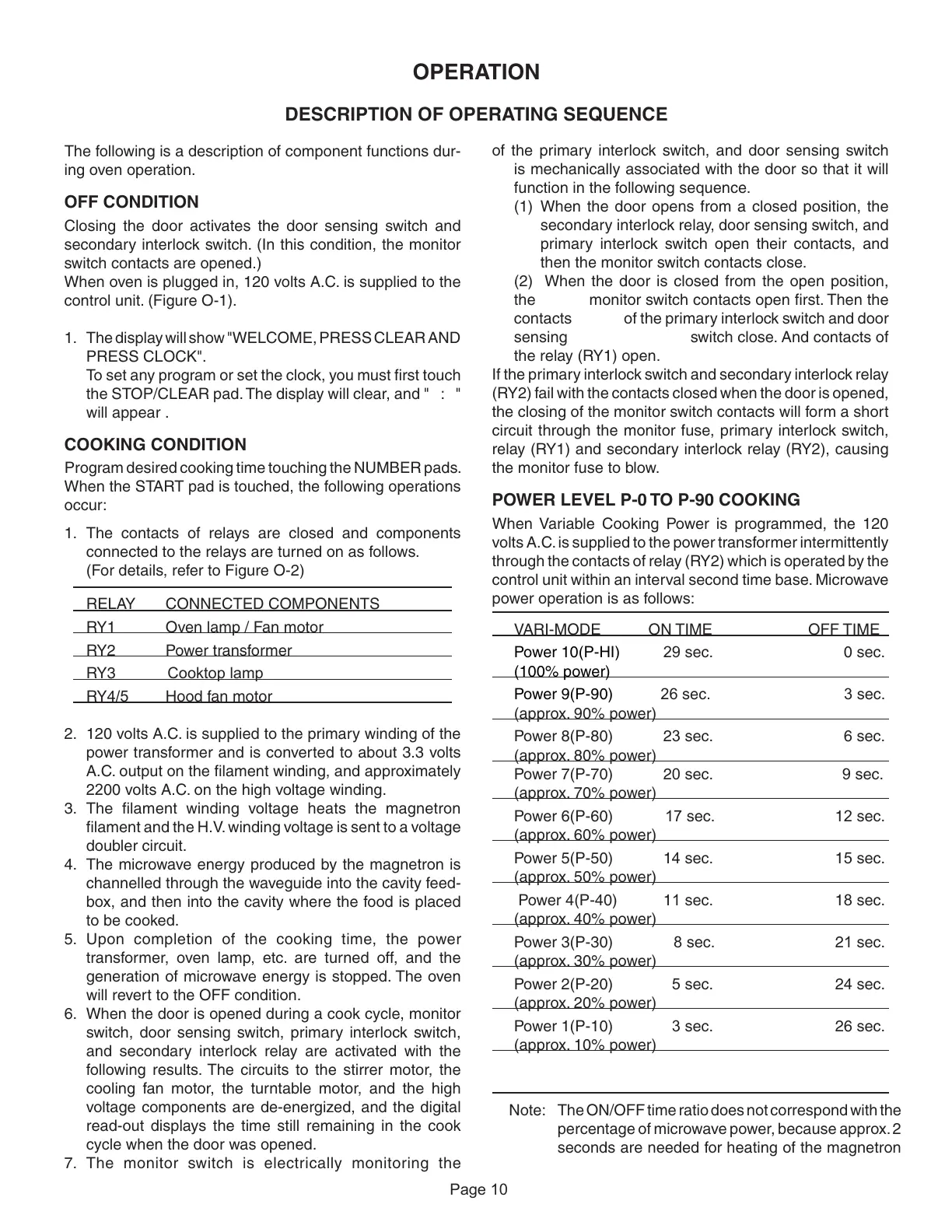 POWER LEVEL P-0 TO P-90 COOKING