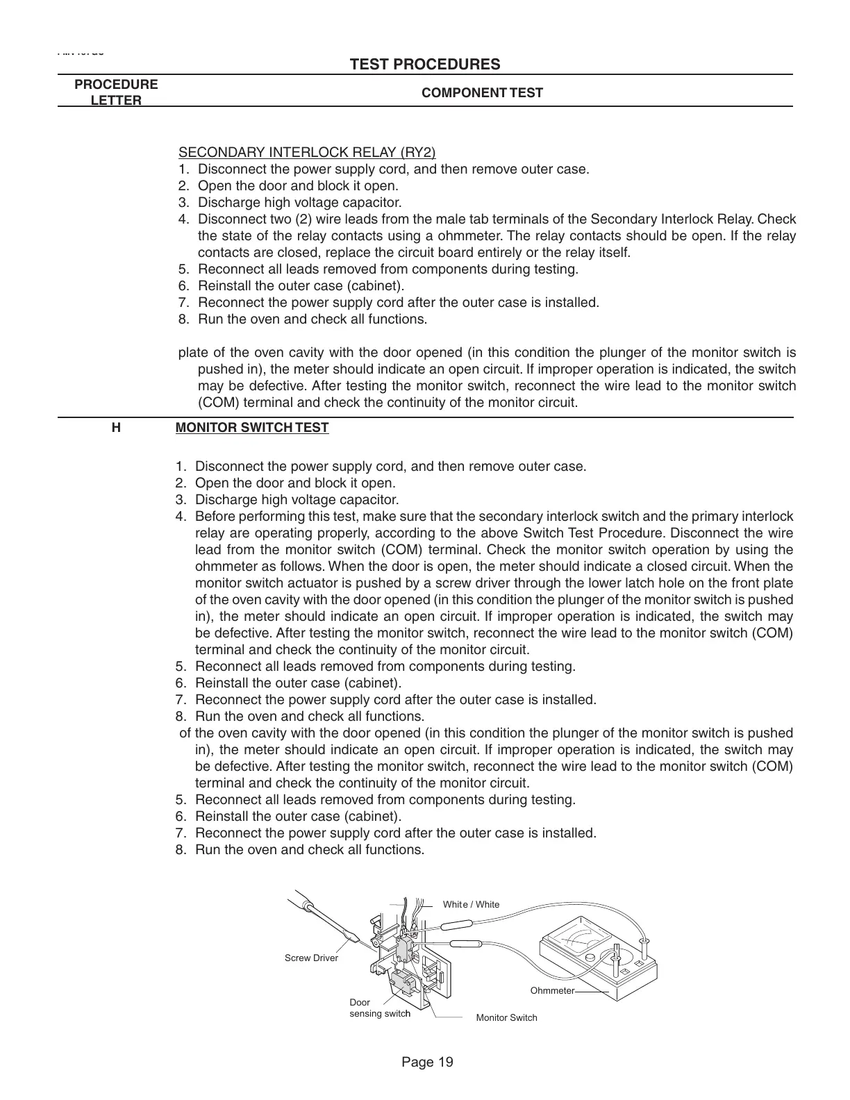 be defective. After testing the monitor switch, reconnect the wire lead to the monitor switch (COM)