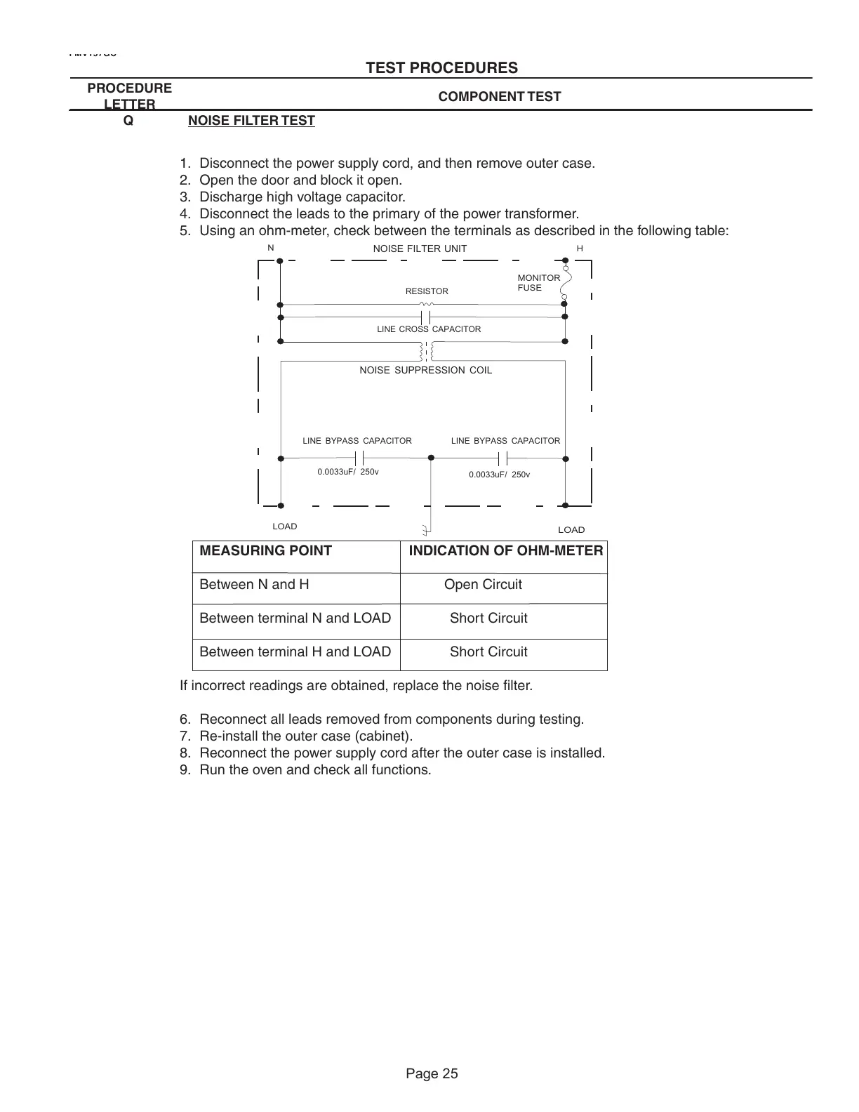 5. Using an ohm-meter, check between the terminals as described in the following table:
