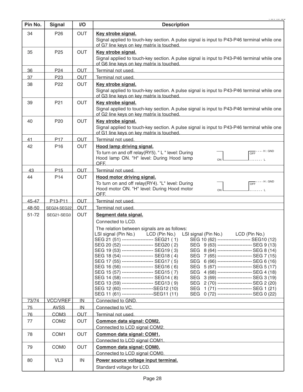 LSI signal (Pin No.) LCD (Pin No.) LSI signal (Pin No.) LCD (Pin No.)