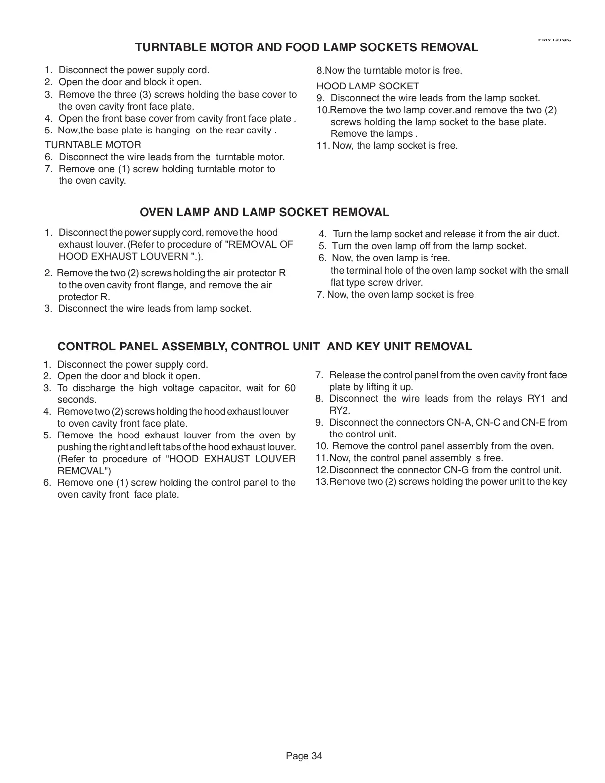 TURNTABLE MOTOR AND FOOD LAMP SOCKETS REMOVAL