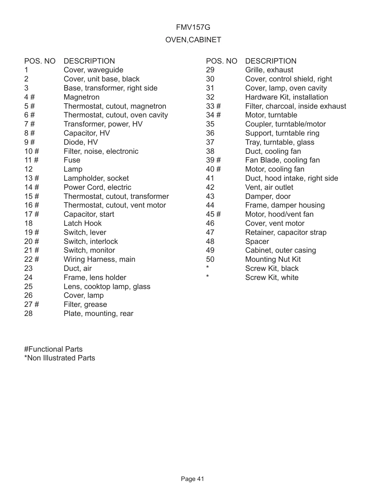 *Non Illustrated Parts