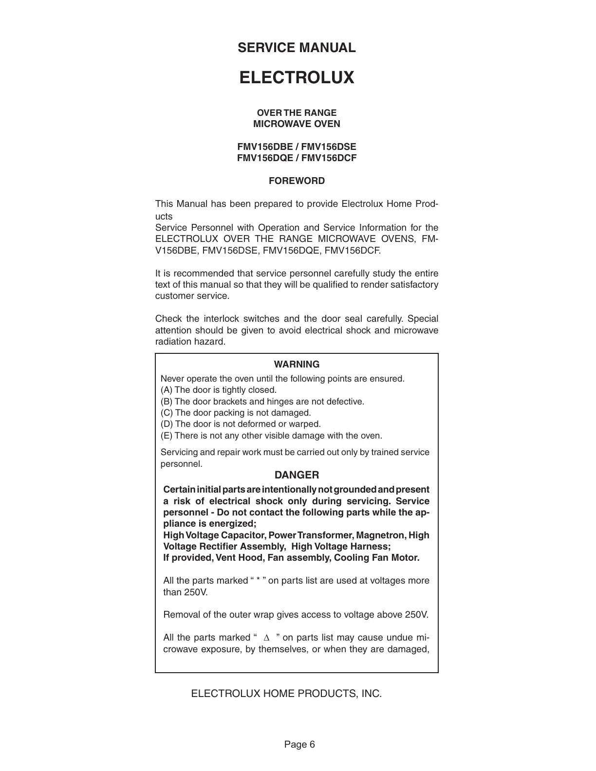 ELECTROLUX OVER THE RANGE MICROWAVE OVENS, FM-