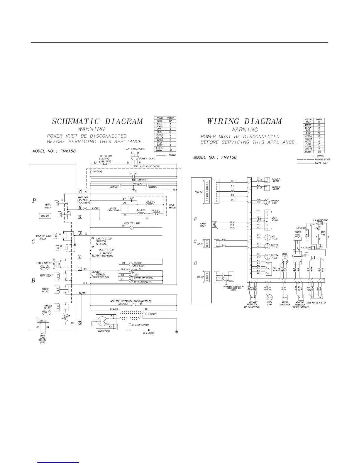 Frigidaire FMV158F - Wiring Schematics; Schematic Diagram; Wiring Diagram