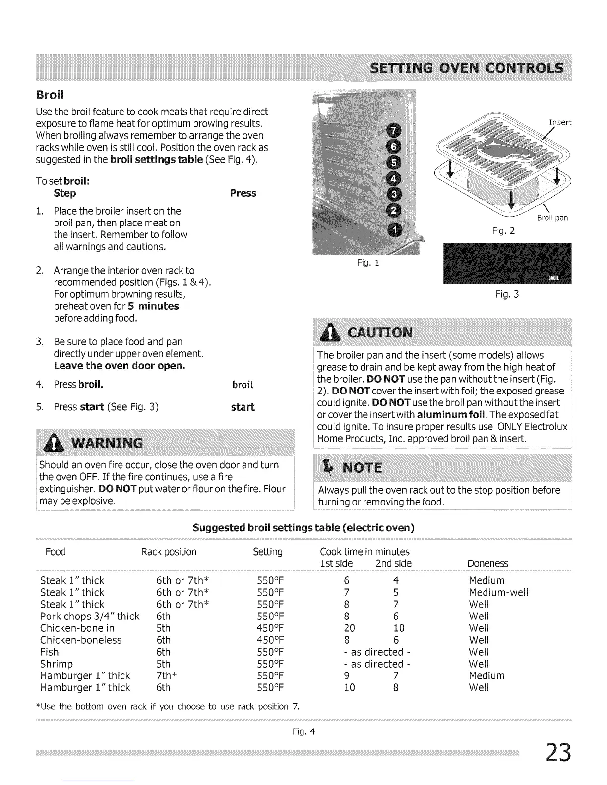 suggested in the broil settings table (See Fig. 4).