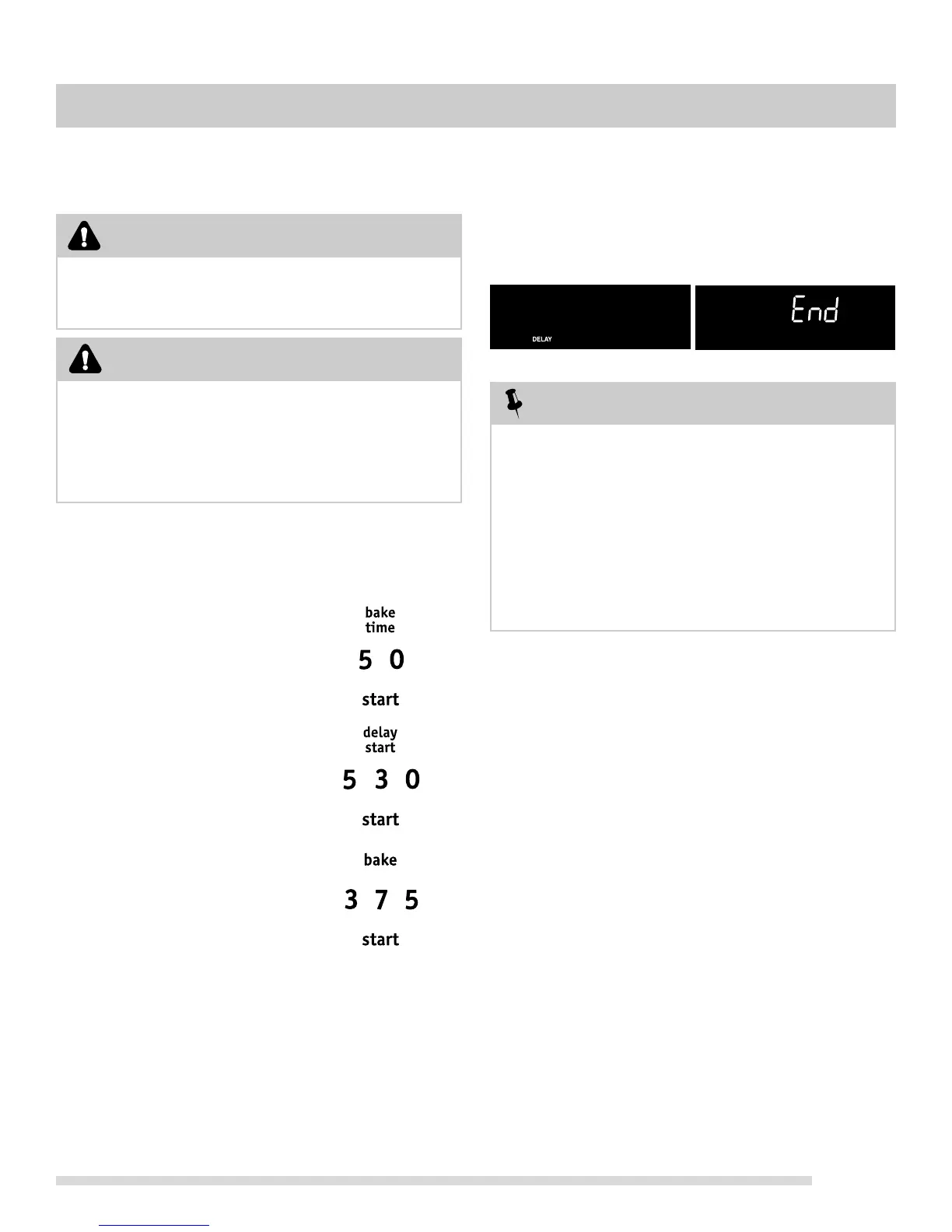 Use caution when setting bake time or delay start