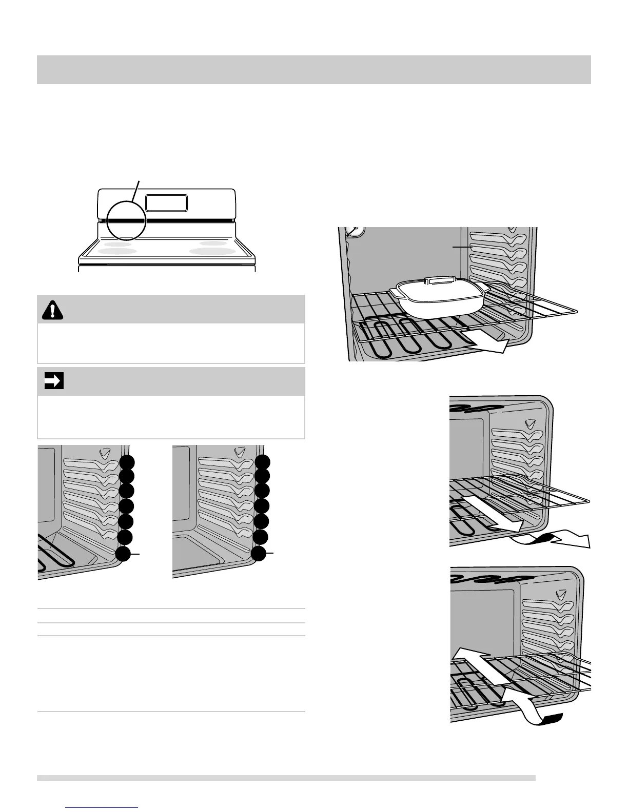Do not remove or attempt to arrange oven racks with