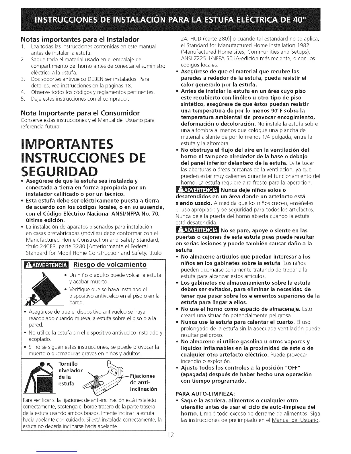 No utilice la estufa sin el dispositivo antivuelco instalado y