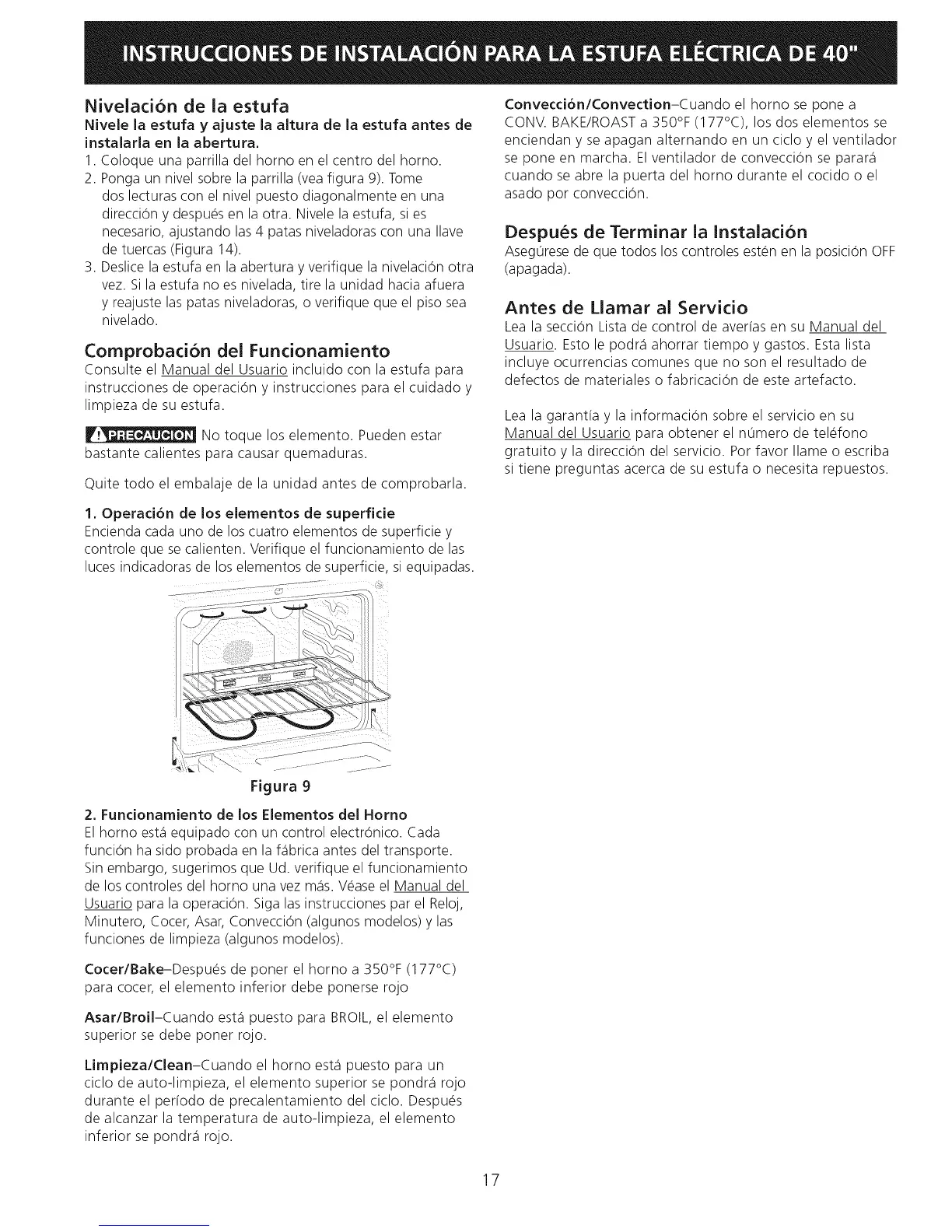 direccion y despues en la otra. Nivele la estufa, si es