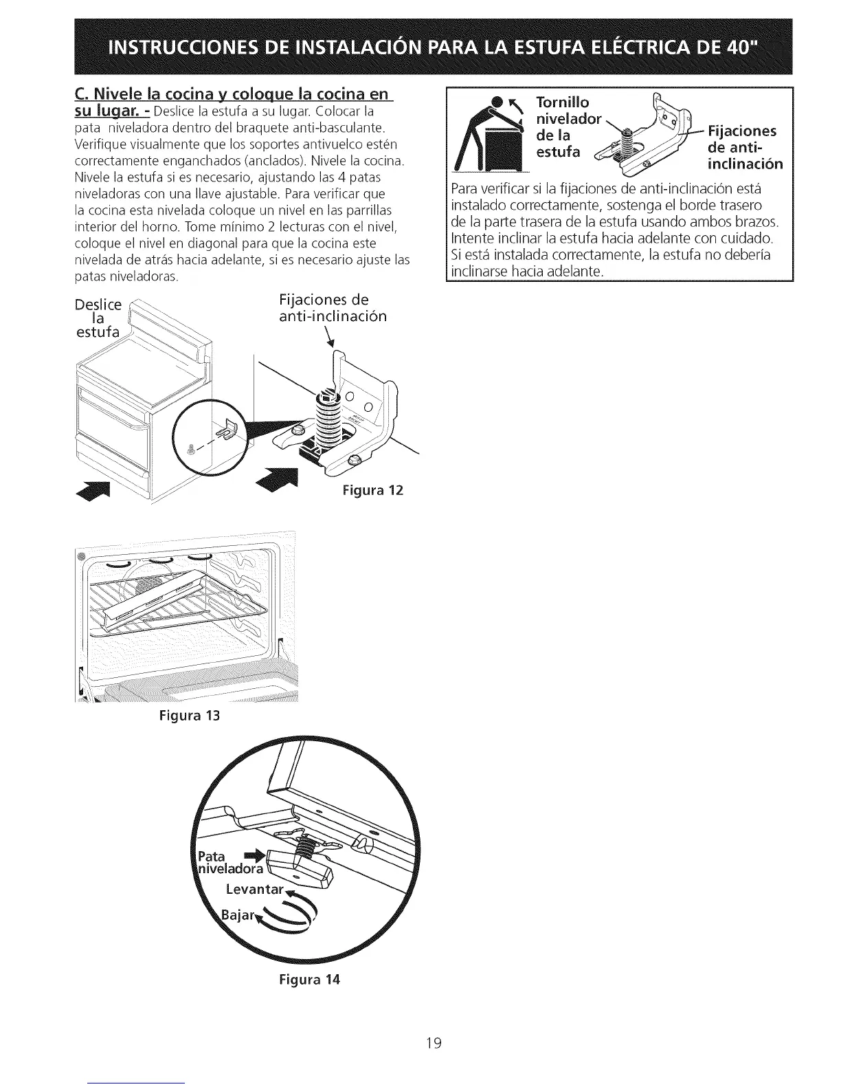 SU Iugar. = Deslice la estufa a su lugar. Colocar la