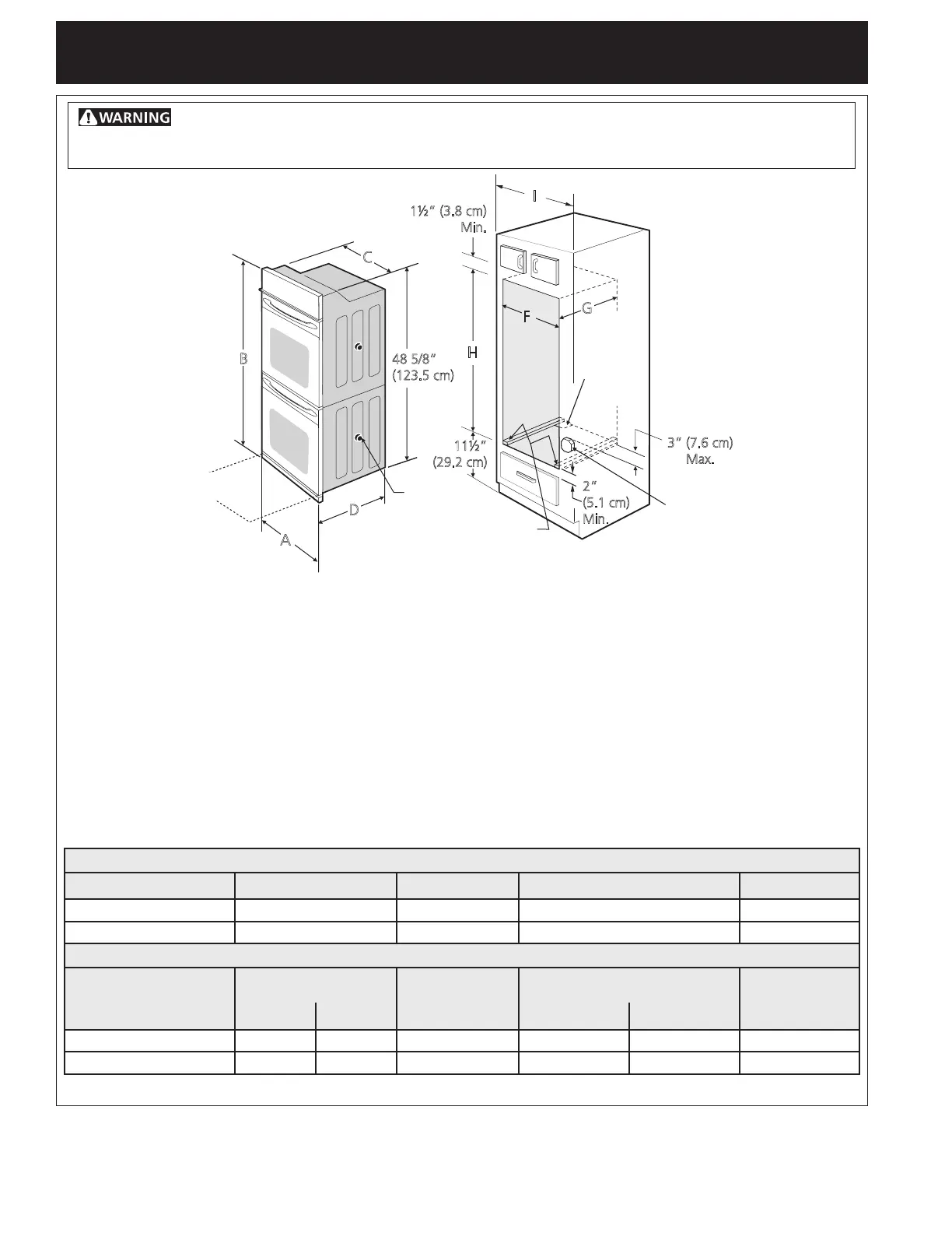 center the oven in the space provided. The oven must be centered to prevent excess heat buildup that may