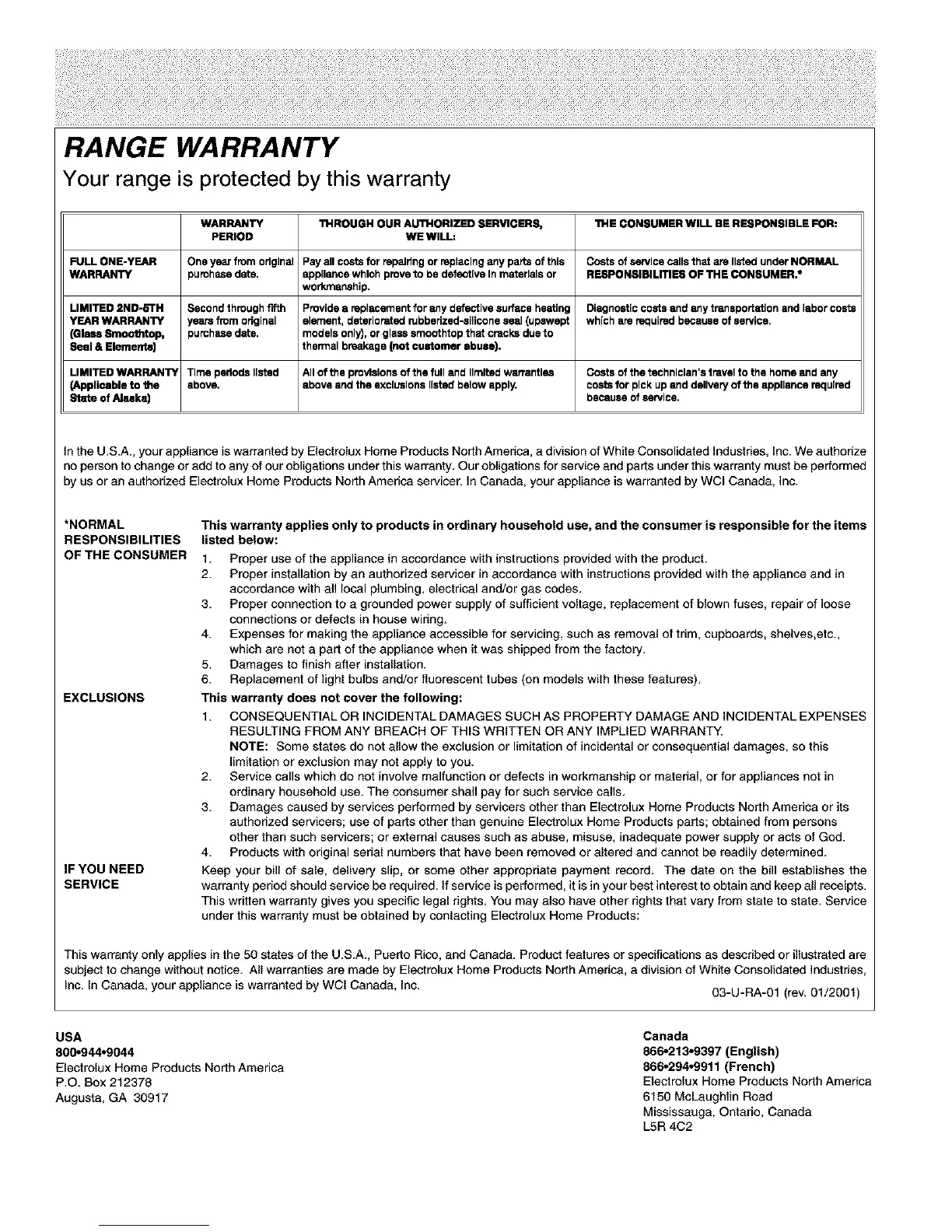 by us or an aL_hodzed Electrolux Home Products North America servicer. In Canada, your appliance is warranted by WCI Canada, Inc.